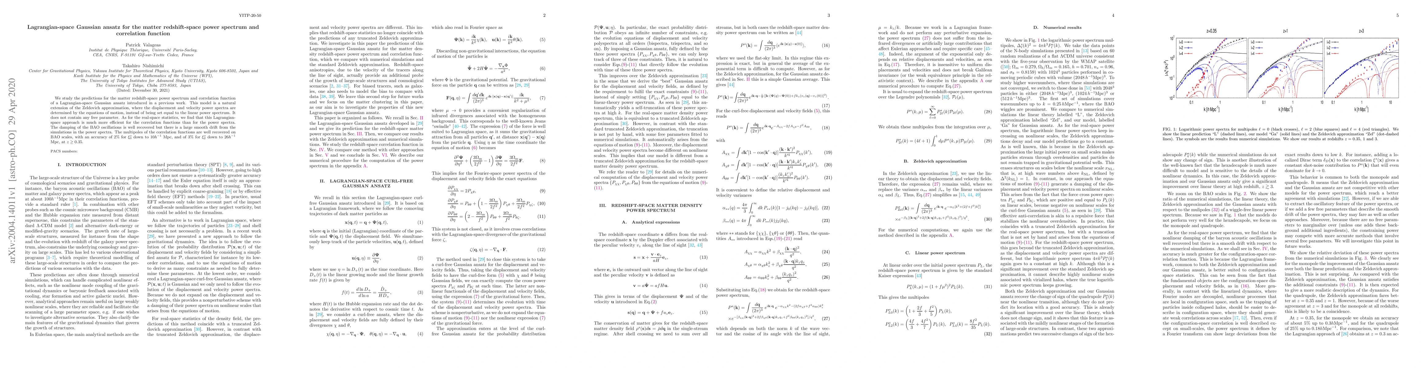 The research introduces a Lagrangian-space Gaussian ansatz for predicting the matter redshift-space power spectrum and correlation function, extending the Zeldovich approximation by determining displacement and velocity power spectra via equations of motion without free parameters.