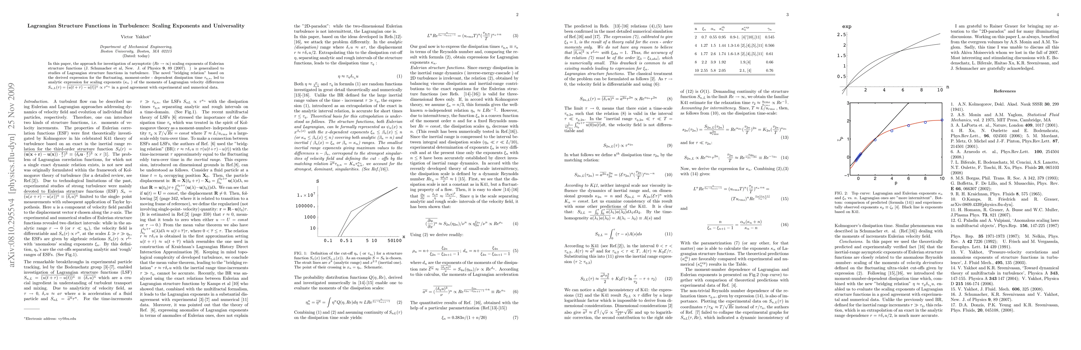 This paper generalizes the investigation of asymptotic scaling exponents of Eulerian structure functions to Lagrangian structure functions in turbulence, using a new "bridging relation" based on the dissipation time. The calculated scaling exponents for Lagrangian velocity differences match experimental and numerical data.