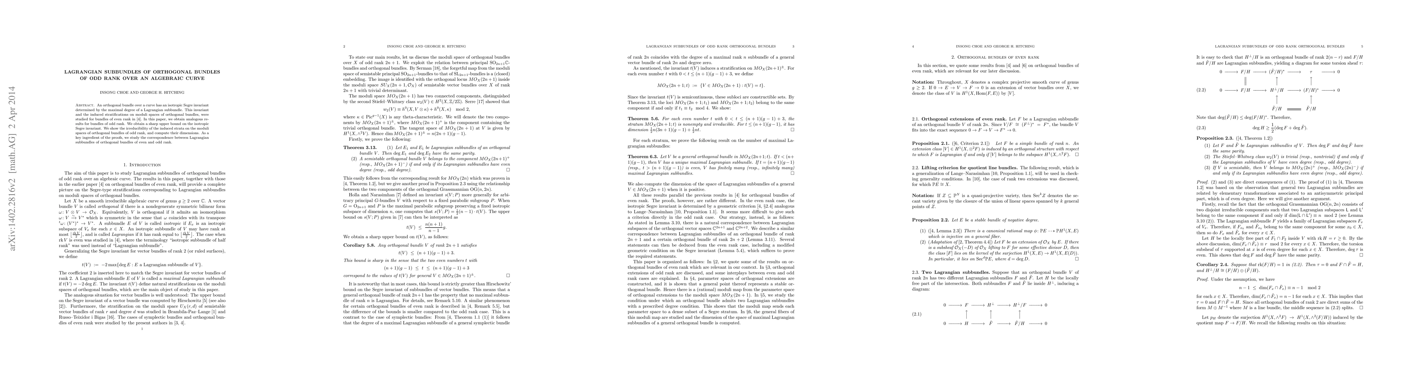 This paper studies orthogonal bundles of odd rank over an algebraic curve, focusing on the isotropic Segre invariant determined by the maximal degree of Lagrangian subbundles. It provides a sharp upper bound for this invariant, proves the irreducibility of strata in moduli spaces, and computes their dimensions, using a correspondence between even and odd rank Lagrangian subbundles as a key proof component.