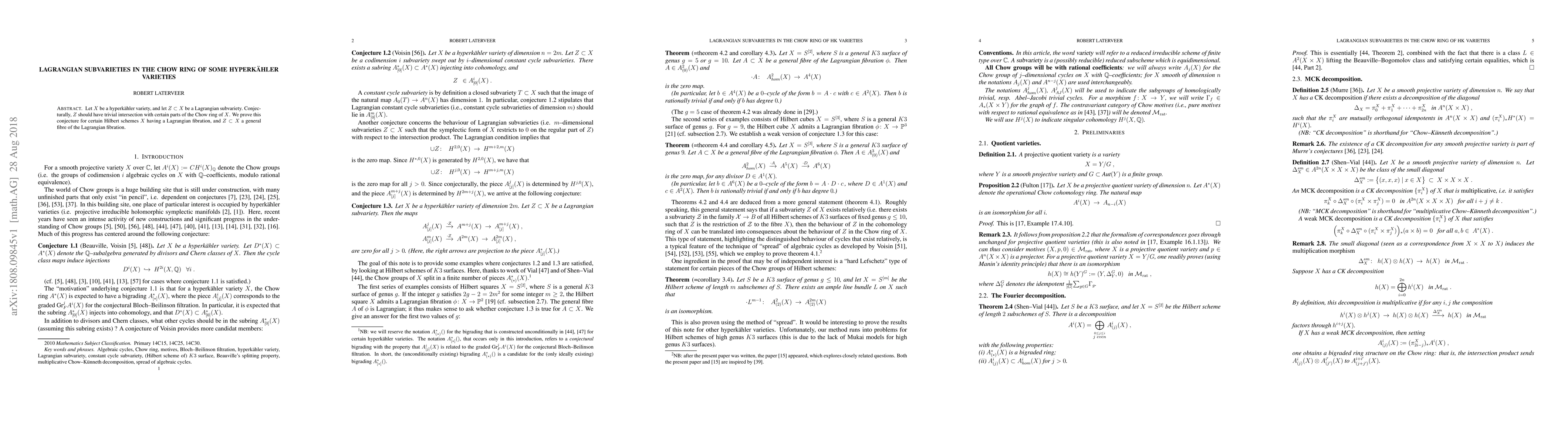 This paper proves that Lagrangian subvarieties $Z$ in hyperkähler varieties $X$ with a Lagrangian fibration intersect trivially with specific parts of the Chow ring of $X$, validating a conjecture for general fibers of these fibrations.