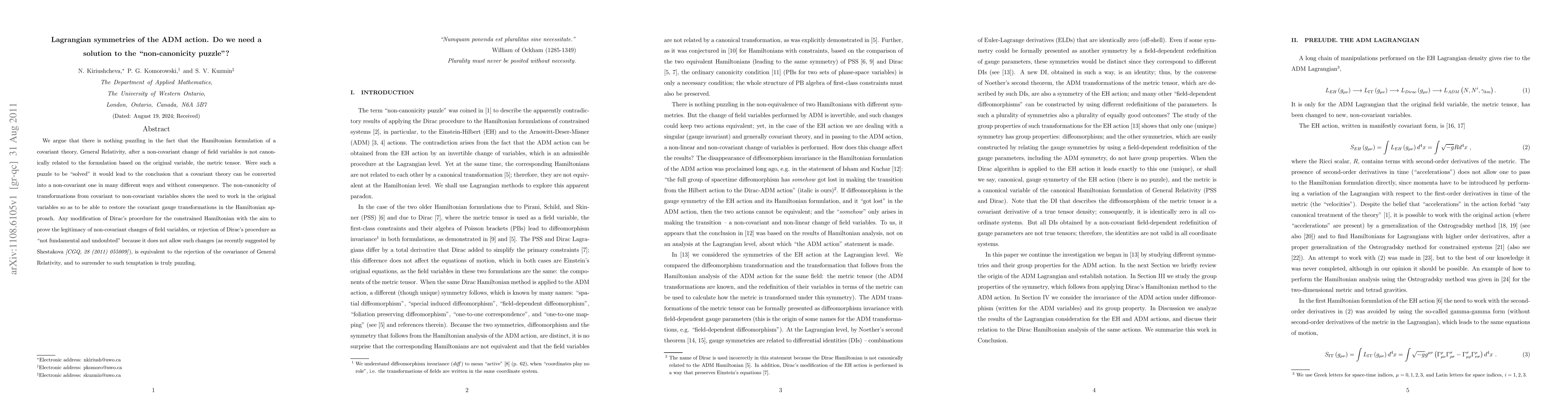 We argue that there is nothing puzzling in the fact that the Hamiltonian formulation of a covariant theory, General Relativity, after a non-covariant change of field variables is not canonically related to the formulation based on the original variable, the metric tensor. Were such a puzzle to be "solved" it would lead to the conclusion that a covariant theory can be converted into a non-covariant one in many different ways and without consequence. The non-canonicity of transformations from covariant to non-covariant variables shows the need to work in the original variables so as to be able to restore the covariant gauge transformations in the Hamiltonian approach. Any modification of Dirac's procedure for the constrained Hamiltonian with the aim to prove the legitimacy of non-covariant changes of field variables, or rejection of Dirac's procedure as "not fundamental and undoubted" because it does not allow such changes (as recently suggested by Shestakova [CGQ, 28 (2011) 055009]), is equivalent to the rejection of the covariance of General Relativity, and to surrender to such temptation is truly puzzling.