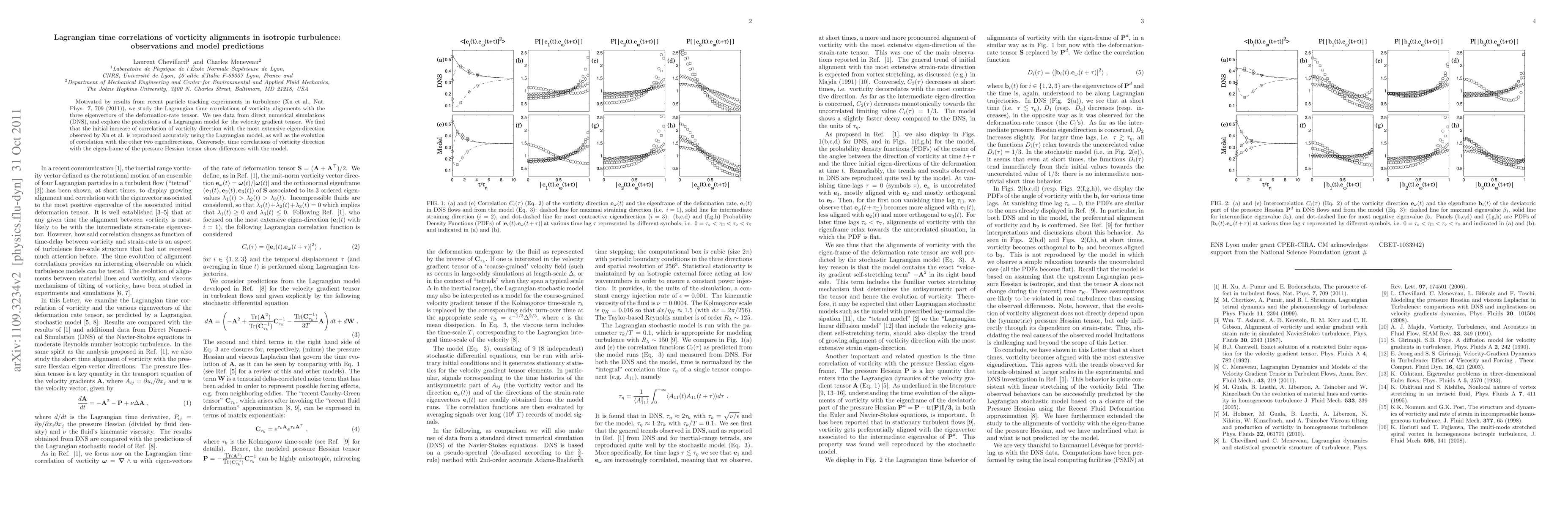 Motivated by results from recent particle tracking experiments in turbulence (Xu et al., Nat. Phys. 7, 709 (2011)), we study the Lagrangian time correlations of vorticity alignments with the three eigenvectors of the deformation-rate tensor. We use data from direct numerical simulations (DNS), and explore the predictions of a Lagrangian model for the velocity gradient tensor. We find that the initial increase of correlation of vorticity direction with the most extensive eigen-direction observed by Xu et al. is reproduced accurately using the Lagrangian model, as well as the evolution of correlation with the other two eigendirections. Conversely, time correlations of vorticity direction with the eigen-frame of the pressure Hessian tensor show differences with the model.