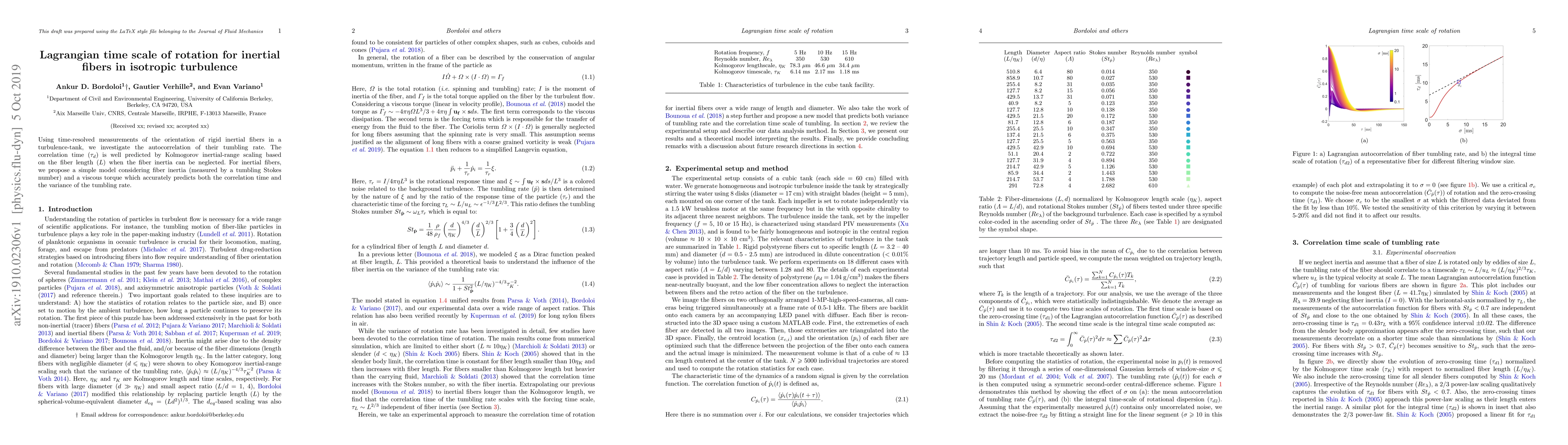 This paper investigates the tumbling dynamics of inertial fibers in isotropic turbulence, finding that the autocorrelation time ($\tau_d$) aligns with Kolmogorov scaling when fiber inertia is negligible. A proposed model incorporating fiber inertia and viscous torque accurately predicts both the correlation time and variance of the tumbling rate.