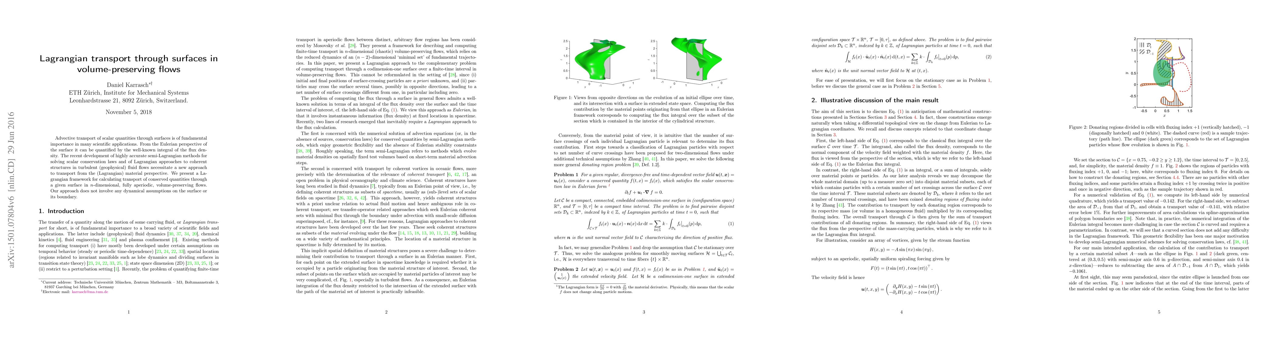 This paper introduces a Lagrangian framework for calculating the transport of conserved quantities through surfaces in volume-preserving flows, addressing the need for a new perspective beyond traditional Eulerian methods, particularly in the context of semi-Lagrangian methods and turbulent fluid dynamics. The proposed approach is fully aperiodic and does not rely on dynamical assumptions about the surface or its boundary.