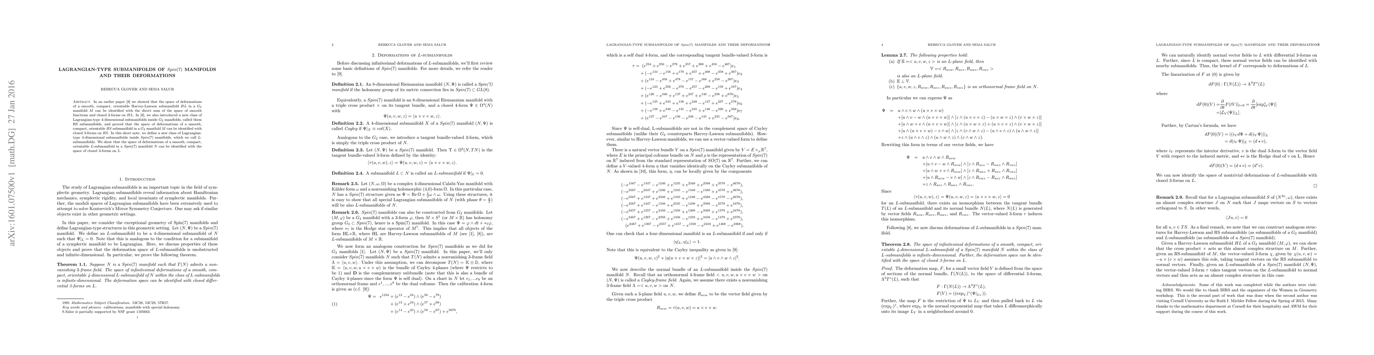 In an earlier paper we showed that the space of deformations of a smooth, compact, orientable Harvey-Lawson submanifold HL in a G2 manifold M can be identified with the direct sum of the space of smooth functions and closed 2-forms on HL. In that paper, we also introduced a new class of Lagrangian-type 4-dimensional submanifolds inside G2 manifolds, called them RS submanifolds, and proved that the space of deformations of a smooth, compact, orientable RS submanifold in a G2 manifold M can be identified with closed 3-forms on RS. In this short note, we define a new class of Lagrangian-type 4-dimensional submanifolds inside Spin(7) manifolds, which we call L-submanifolds. We show that the space of deformations of a smooth, compact, orientable L-submanifold in a Spin(7) manifold N can be identified with the space of closed 3-forms on L.