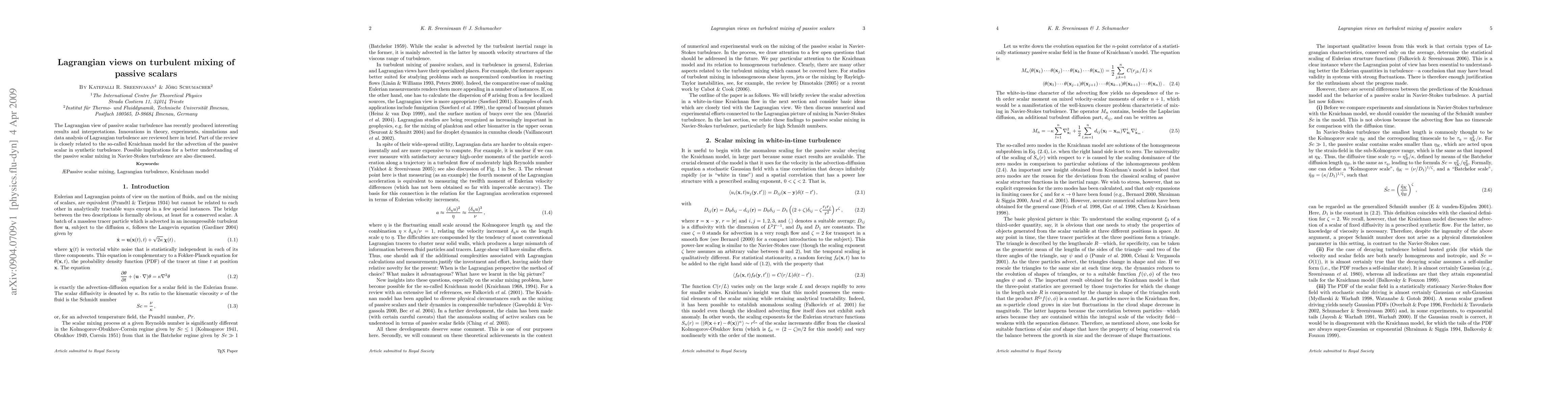 This paper reviews recent advancements in Lagrangian perspectives on turbulent mixing of passive scalars, highlighting theoretical innovations, experimental and simulation techniques, and data analysis methods. It also discusses the Kraichnan model's implications for understanding scalar mixing in Navier-Stokes turbulence.