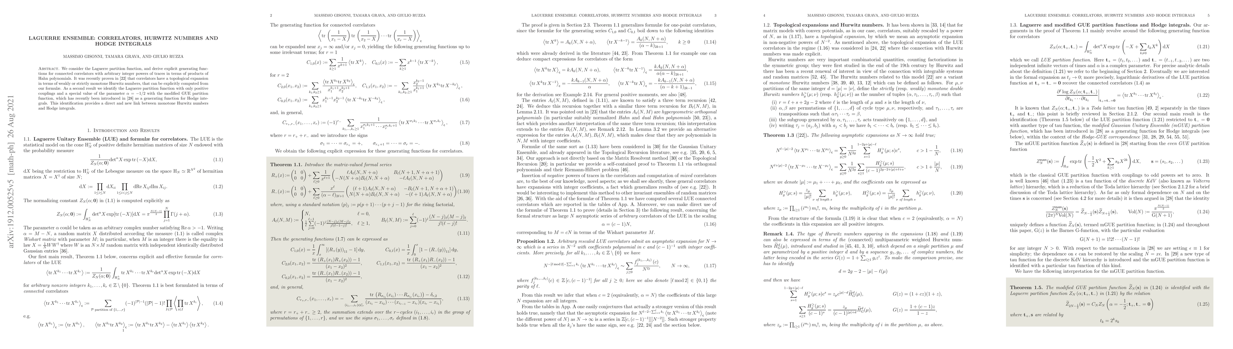 This paper derives generating functions for Laguerre ensemble correlators using Hahn polynomials and establishes a topological expansion in terms of Hurwitz numbers. Additionally, it connects the Laguerre partition function to the modified GUE partition function, thus linking monotone Hurwitz numbers to Hodge integrals.