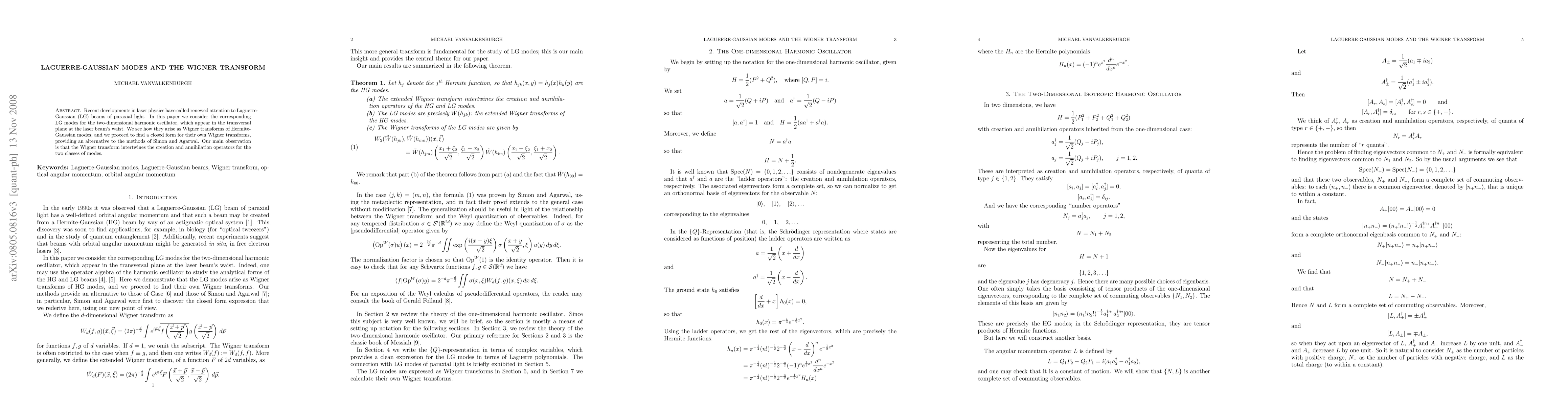 This paper explores Laguerre-Gaussian (LG) modes in laser physics, showing they emerge as Wigner transforms of Hermite-Gaussian modes. It provides a closed form for the Wigner transforms of LG modes, revealing the intertwining of creation and annihilation operators between the two modes.