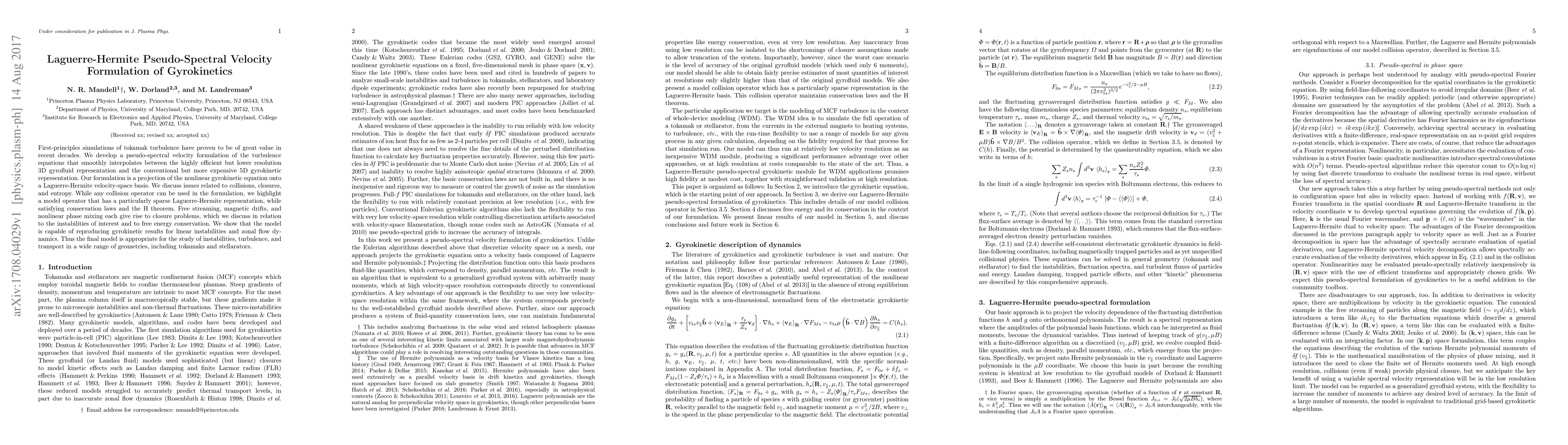 Researchers developed a new method for simulating turbulence in tokamaks using a pseudo-spectral velocity formulation that combines the benefits of both 3D gyrofluid and 5D gyrokinetic representations.