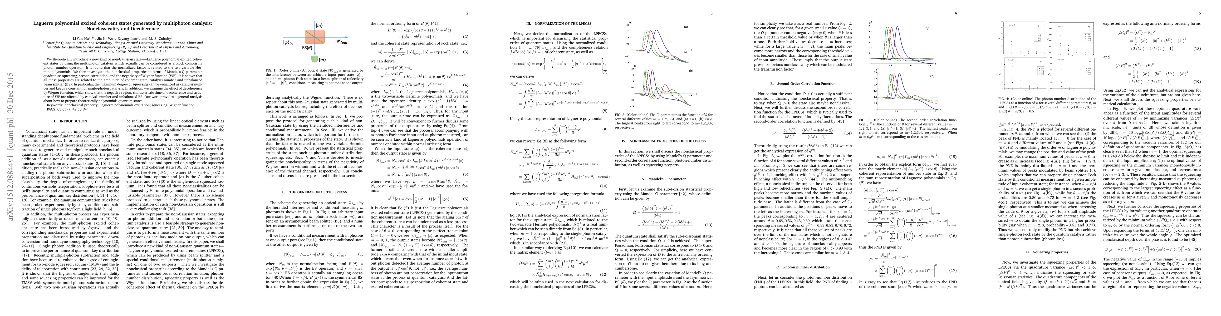 This paper introduces a new type of non-Gaussian state, Laguerre polynomial excited coherent states, generated via multiphoton catalysis. It explores their nonclassical properties and examines the impact of decoherence, showing that these states' characteristics are influenced by the catalysis number and the degree of beam splitter imbalance.
