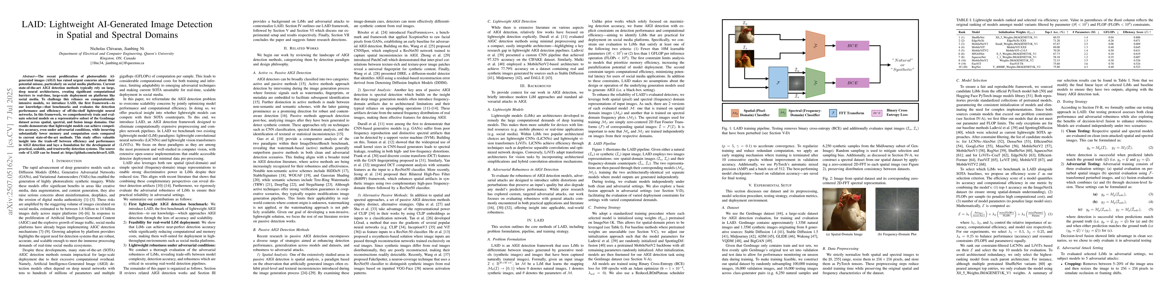 The recent proliferation of photorealistic AI-generated images (AIGI) has raised urgent concerns about their potential misuse, particularly on social media platforms. Current state-of-the-art AIGI detection methods typically rely on large, deep neural architectures, creating significant computational barriers to real-time, large-scale deployment on platforms like social media. To challenge this reliance on computationally intensive models, we introduce LAID, the first framework -- to our knowledge -- that benchmarks and evaluates the detection performance and efficiency of off-the-shelf lightweight neural networks. In this framework, we comprehensively train and evaluate selected models on a representative subset of the GenImage dataset across spatial, spectral, and fusion image domains. Our results demonstrate that lightweight models can achieve competitive accuracy, even under adversarial conditions, while incurring substantially lower memory and computation costs compared to current state-of-the-art methods. This study offers valuable insight into the trade-off between efficiency and performance in AIGI detection and lays a foundation for the development of practical, scalable, and trustworthy detection systems. The source code of LAID can be found at: https://github.com/nchivar/LAID.