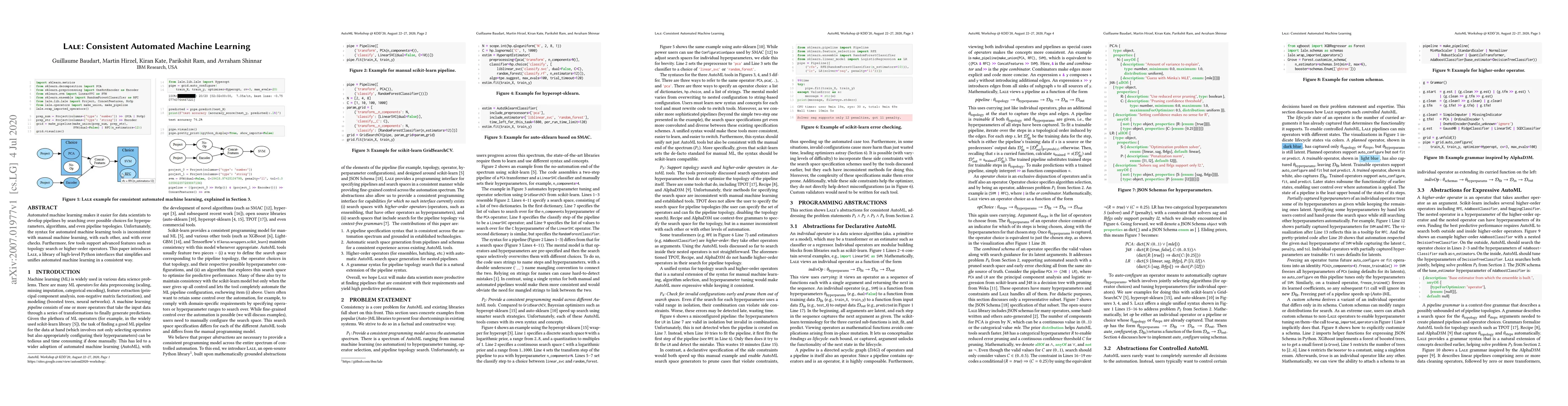Lale is a Python library designed to unify and simplify automated machine learning by providing consistent interfaces and supporting advanced features like topology search. It aims to bridge the syntax inconsistencies between automated and manual machine learning tools.