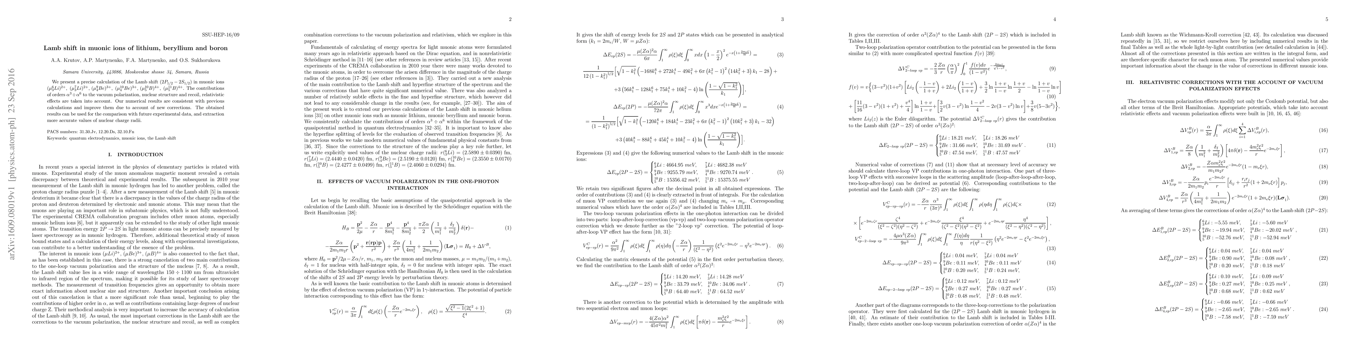 Researchers calculated the Lamb shift in muonic ions of lithium, beryllium, and boron, improving previous results with new corrections for vacuum polarization, nuclear structure, and recoil effects.