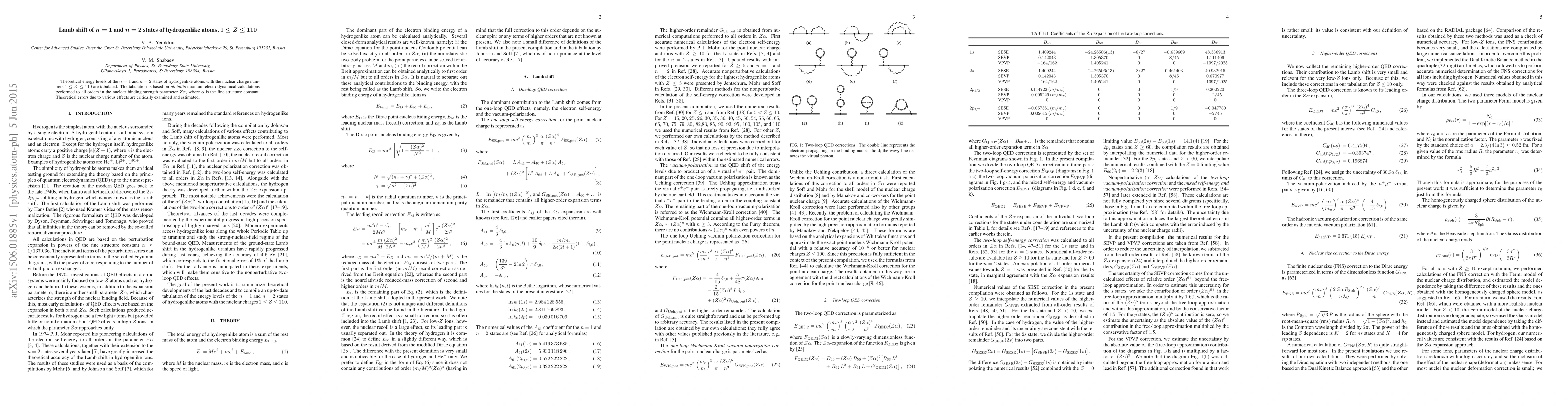 This paper presents ab initio quantum electrodynamical calculations for the energy levels of hydrogenlike atoms' $n = 1$ and $n = 2$ states across nuclear charge numbers $1 \le Z \le 110$. It critically evaluates theoretical errors arising from various effects in these calculations.