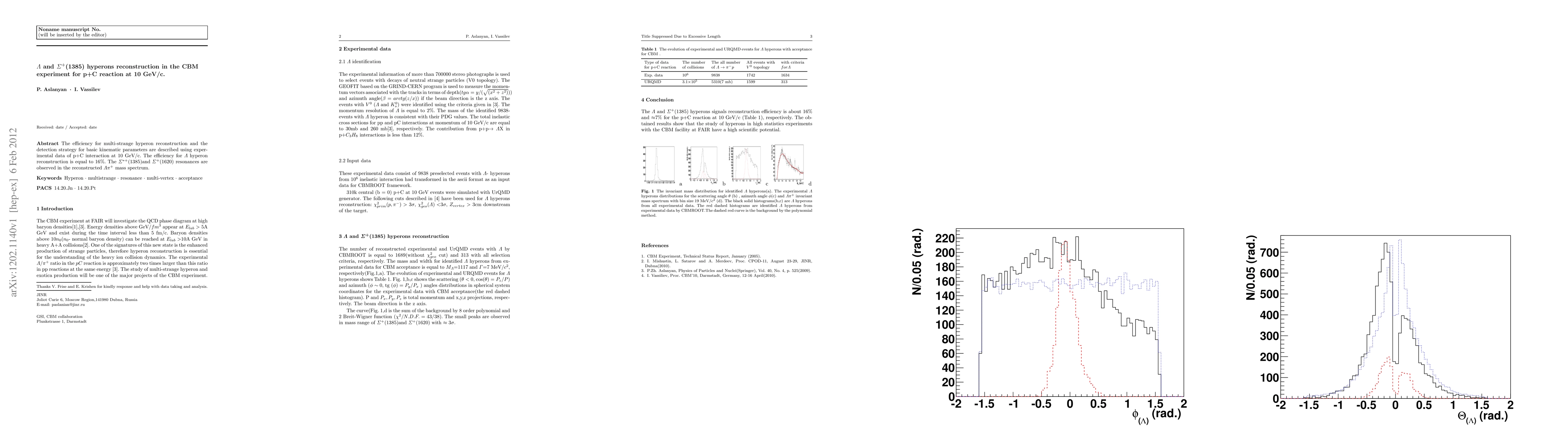 The efficiency for multi-strange hyperon reconstruction and the detection strategy for basic kinematic parameters are described using experimental data of p+C interaction at 10 GeV/c. The efficiency for $\Lambda$ hyperon reconstruction is equal to 16%. The $\Sigma^{*+}$(1385)and $\Sigma^+$(1620) resonances are observed in the reconstructed $\Lambda \pi^+$ mass spectrum.