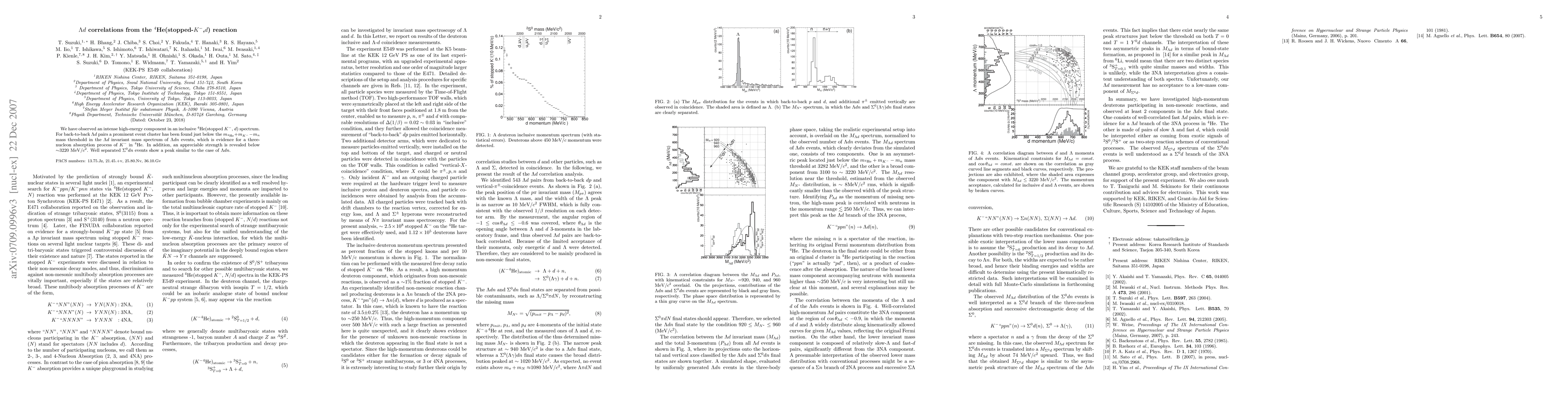 We have observed an intense high-energy component in an inclusive $^4$He(stopped $K^-$, $d$) spectrum. For back-to-back $\Lambda d$ pairs a prominent event cluster has been found just below the $m_{^4\textrm{He}}+m_{K^-}-m_{n}$ mass threshold in the $\Lambda d$ invariant mass spectrum of $\Lambda dn$ events, which is evidence for a three-nucleon absorption process of $K^-$ in $^4$He. In addition, an appreciable strength is revealed below $\sim$3220 MeV/$c^2$. Well separated $\Sigma^0 dn$ events show a peak similar to the case of $\Lambda dn$.