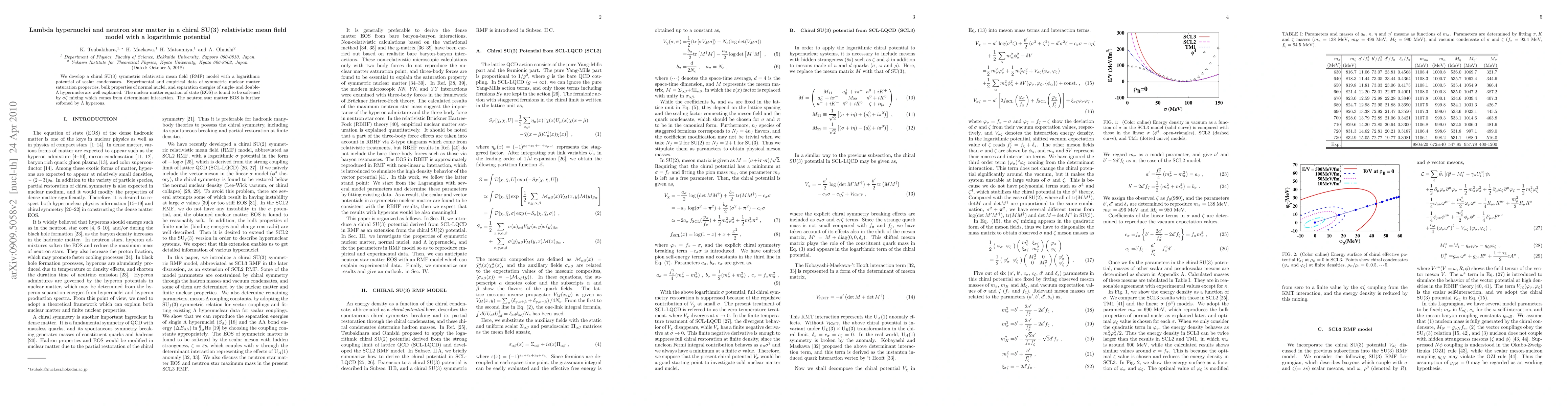 This paper develops a chiral SU(3) relativistic mean field model with a logarithmic potential, successfully explaining nuclear matter properties and hypernuclei data. The model softens the neutron star matter equation of state through $\sigma\zeta$ mixing and $\Lambda$ hyperons.