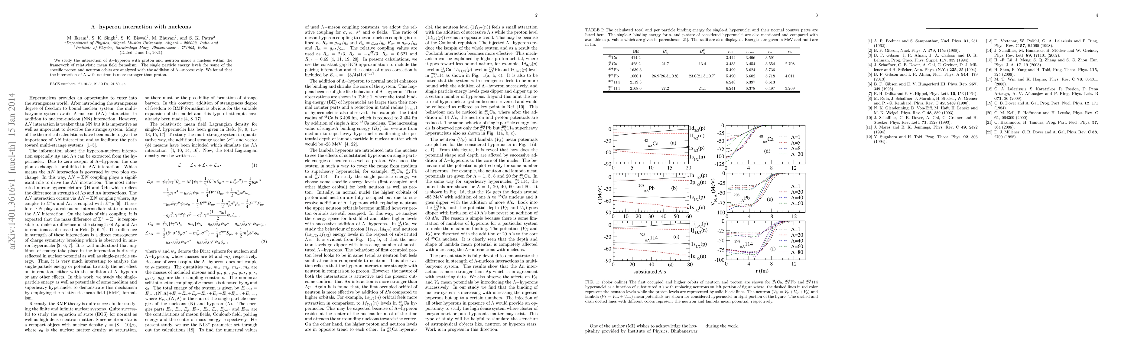 This study investigates the interaction between a hyperon and nucleons in a nucleus using relativistic mean field formalism. It finds that the hyperon's interaction with neutrons is stronger than its interaction with protons.