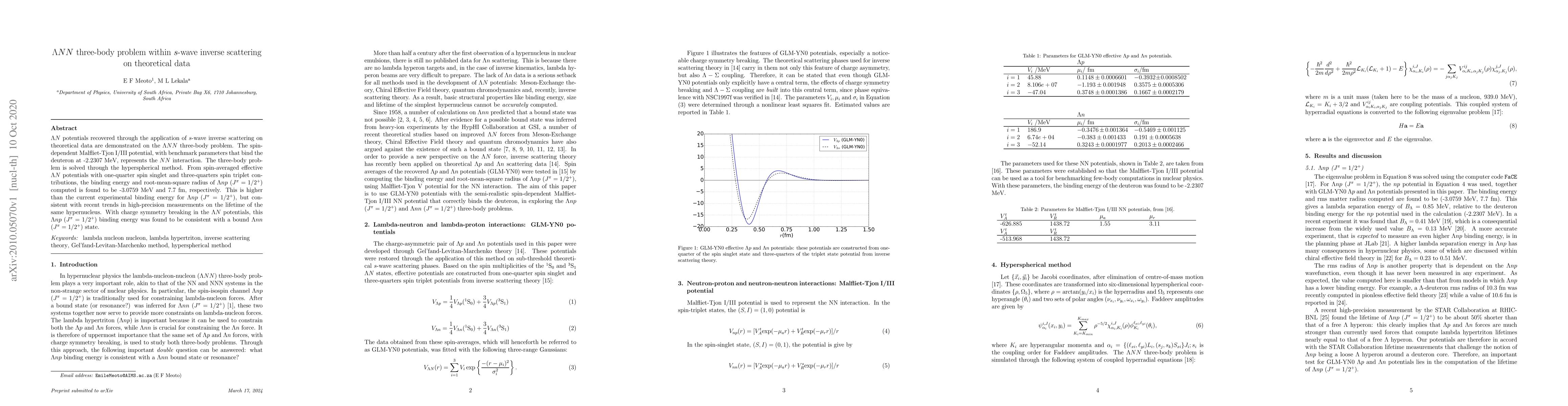 $\Lambda N $ potentials recovered through the application of $s$-wave inverse scattering on theoretical data are demonstrated on the $\Lambda NN $ three-body problem. The spin-dependent Malfliet-Tjon I/III potential, with benchmark parameters that bind the deuteron at -2.2307 MeV, represents the $NN$ interaction. The three-body problem is solved through the hyperspherical method. From spin-averaged effective $\Lambda N $ potentials with one-quarter spin singlet and three-quarters spin triplet contributions, the binding energy and root-mean-square radius of $\Lambda n p$ ($J^{\pi}=1/2^+$) computed is found to be -3.0759 MeV and 7.7 fm, respectively. This is higher than the current experimental binding energy for $\Lambda n p$ ($J^{\pi}=1/2^+$), but consistent with recent trends in high-precision measurements on the lifetime of the same hypernucleus. With charge symmetry breaking in the $\Lambda N $ potentials, this $\Lambda n p$ ($J^{\pi}=1/2^+$) binding energy was found to be consistent with a bound $\Lambda n n$ ($J^{\pi}=1/2^+$) state.