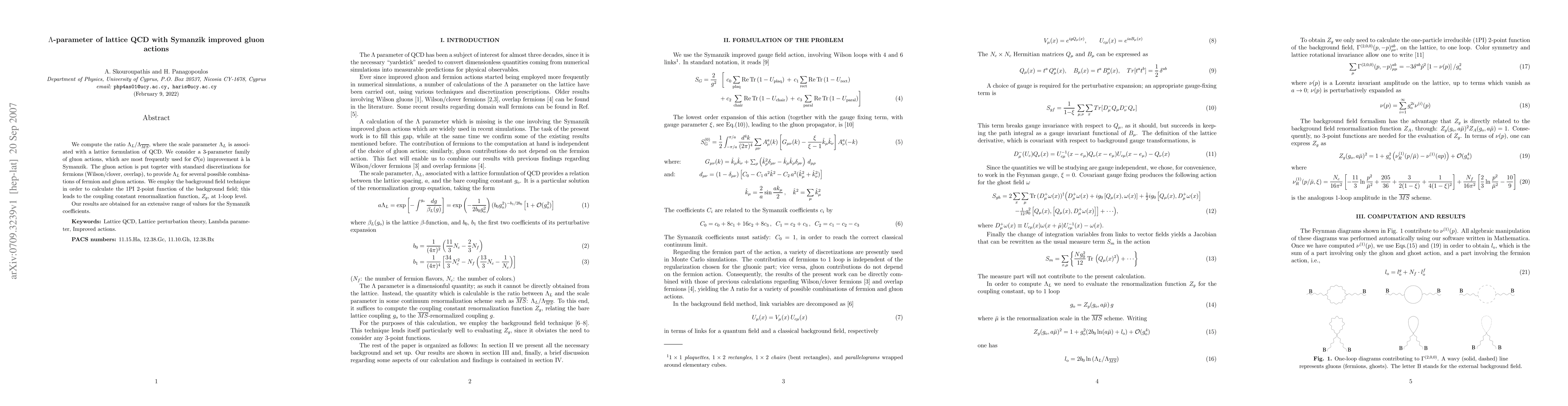 We compute the ratio Lambda_L/Lambda_MS, where the scale parameter Lambda_L is associated with a lattice formulation of QCD. We consider a 3-parameter family of gluon actions, which are most frequently used for O(a) improvement a` la Symanzik. The gluon action is put togeter with standard discretizations for fermions (Wilson/clover, overlap), to provide Lambda_L for several possible combinations of fermion and gluon actions. We employ the background field technique in order to calculate the 1PI 2-point function of the background field; this leads to the coupling constant renormalization function, Z_g, at 1-loop level. Our results are obtained for an extensive range of values for the Symanzik coefficients.