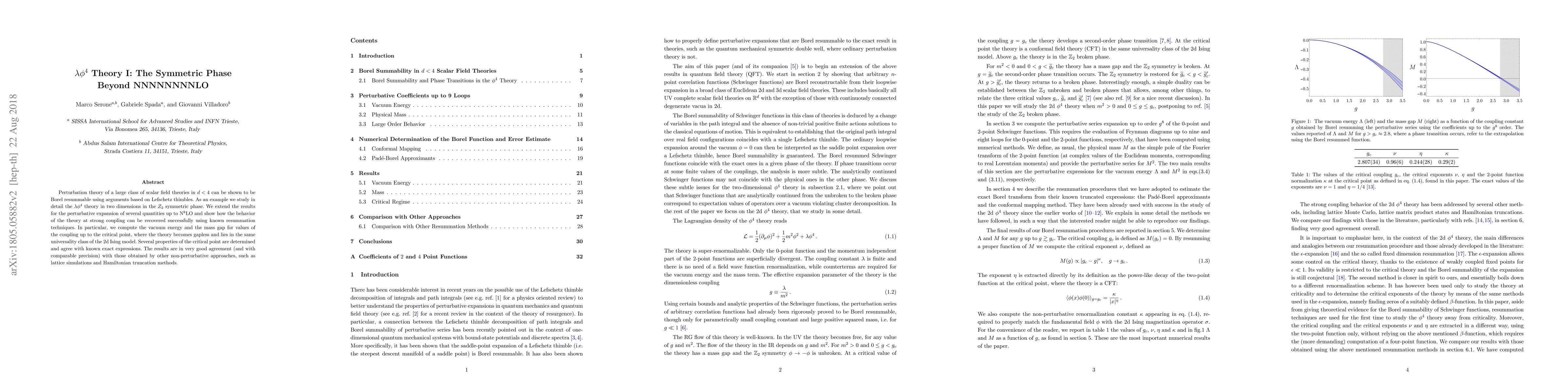Perturbation theory of a large class of scalar field theories in $d<4$ can be shown to be Borel resummable using arguments based on Lefschetz thimbles. As an example we study in detail the $\lambda \phi^4$ theory in two dimensions in the $Z_2$ symmetric phase. We extend the results for the perturbative expansion of several quantities up to N$^8$LO and show how the behavior of the theory at strong coupling can be recovered successfully using known resummation techniques. In particular, we compute the vacuum energy and the mass gap for values of the coupling up to the critical point, where the theory becomes gapless and lies in the same universality class of the 2d Ising model. Several properties of the critical point are determined and agree with known exact expressions. The results are in very good agreement (and with comparable precision) with those obtained by other non-perturbative approaches, such as lattice simulations and Hamiltonian truncation methods.