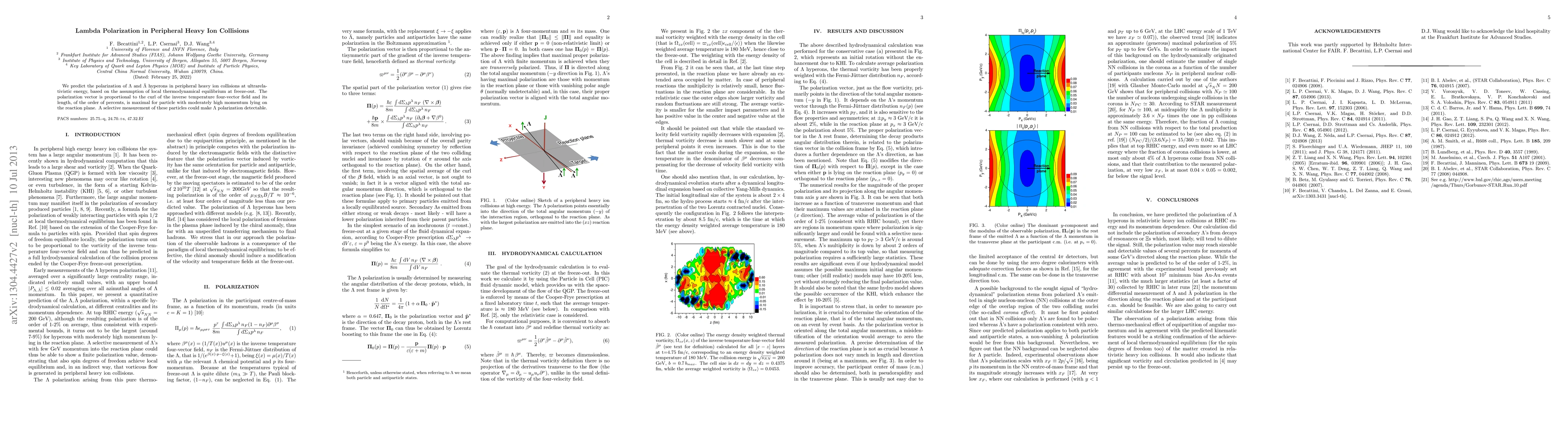 This paper predicts the polarization of Lambda and antiLambda hyperons in peripheral heavy ion collisions at ultrarelativistic energy, suggesting it could be detectable with a selective measurement, and is maximal for particles with moderately high momentum on the reaction plane.