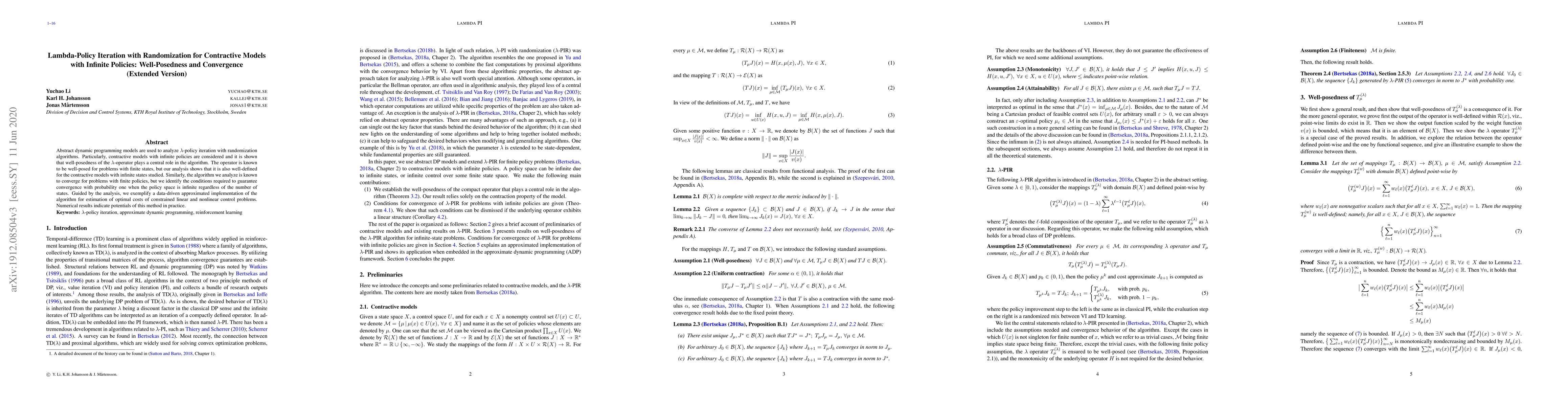 Abstract dynamic programming models are used to analyze $\lambda$-policy iteration with randomization algorithms. Particularly, contractive models with infinite policies are considered and it is shown that well-posedness of the $\lambda$-operator plays a central role in the algorithm. The operator is known to be well-posed for problems with finite states, but our analysis shows that it is also well-defined for the contractive models with infinite states studied. Similarly, the algorithm we analyze is known to converge for problems with finite policies, but we identify the conditions required to guarantee convergence with probability one when the policy space is infinite regardless of the number of states. Guided by the analysis, we exemplify a data-driven approximated implementation of the algorithm for estimation of optimal costs of constrained linear and nonlinear control problems. Numerical results indicate potentials of this method in practice.