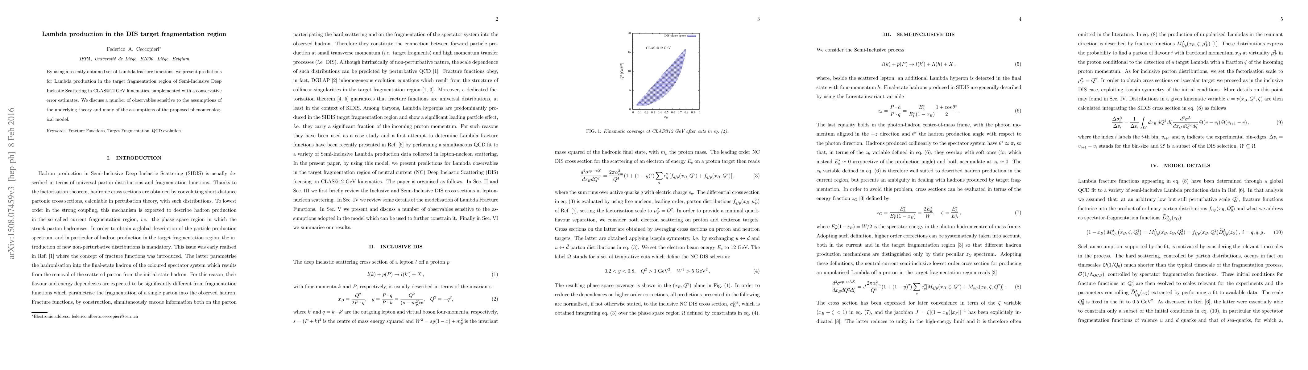 By using a recently obtained set of Lambda fracture functions, we present predictions for Lambda production in the target fragmentation region of Semi-Inclusive Deep Inelastic Scattering in CLAS@12 GeV kinematics, supplemented with a conservative error estimates. We discuss a number of observables sensitive to the assumptions of the underlying theory and many of the assumptions of the proposed phenomenological model.