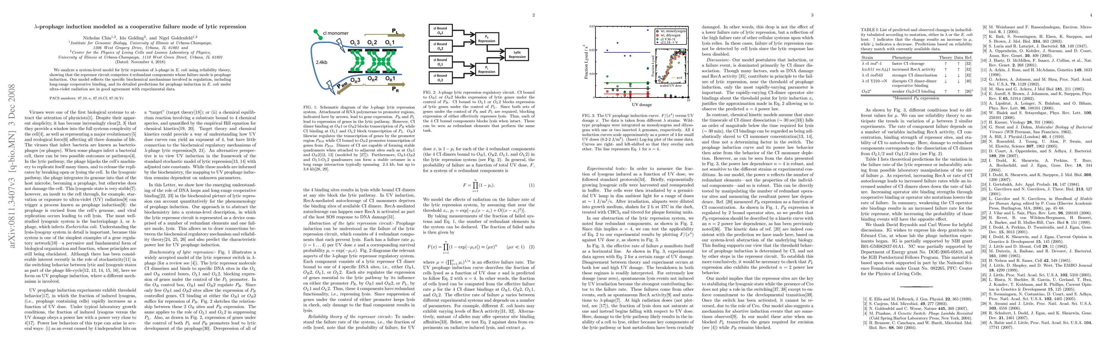 Researchers developed a system-level model to study how E. coli's lytic repression circuit fails, leading to prophage induction under UV radiation, revealing the importance of redundant components.
