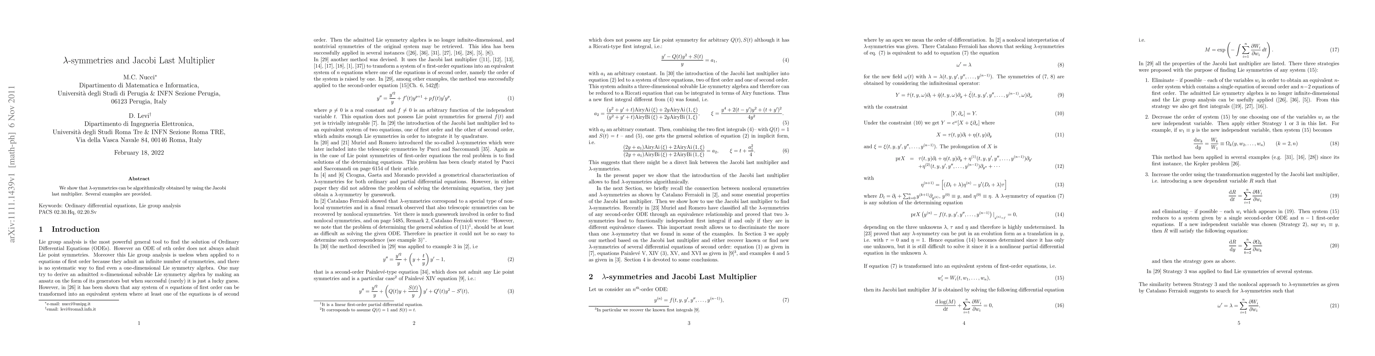 We show that $\lambda$-symmetries can be algorithmically obtained by using the Jacobi last multiplier. Several examples are provided.