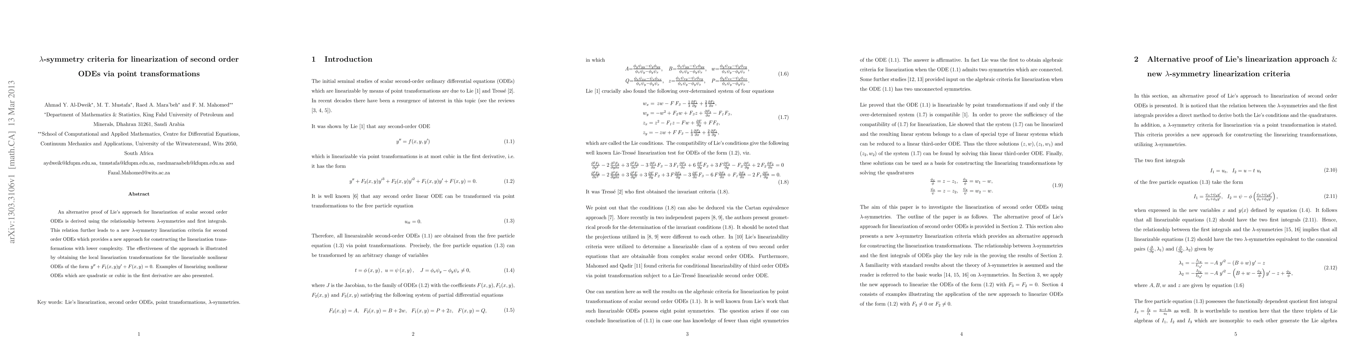 This paper presents an alternative proof for linearizing second-order ODEs using $\lambda$-symmetry criteria linked to first integrals, offering a new method for constructing linearization transformations with reduced complexity. Examples of linearizing specific nonlinear ODEs are provided to demonstrate the effectiveness of this approach.