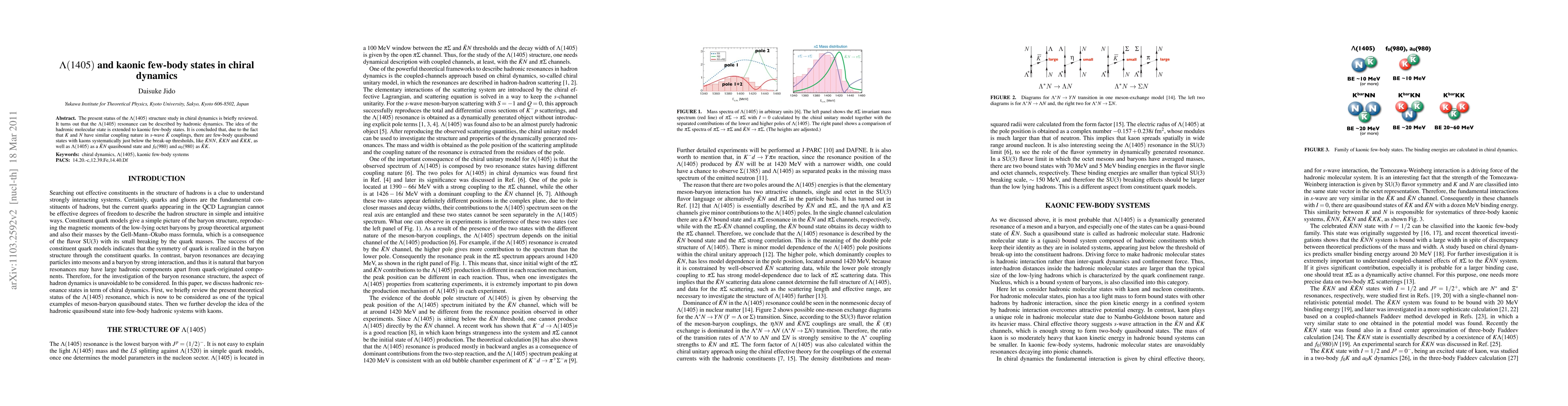 The present status of the Lambda(1405) structure study in chiral dynamics is briefly reviewed. It turns out that the Lambda(1405) resonance can be described by hadronic dynamics. The idea of the hadronic molecular state is extended to kaonic few-body states. It is concluded that, due to the fact that K and N have similar coupling nature in s-wave Kbar couplings, there are few-body quasibound states with kaons systematically just below the break-up thresholds, like KbarNN, KbarKN and KbarKK, as well as Lambda(1405) as a KbarN quasibound state and f_0(980) and a_0(980) as KbarK.