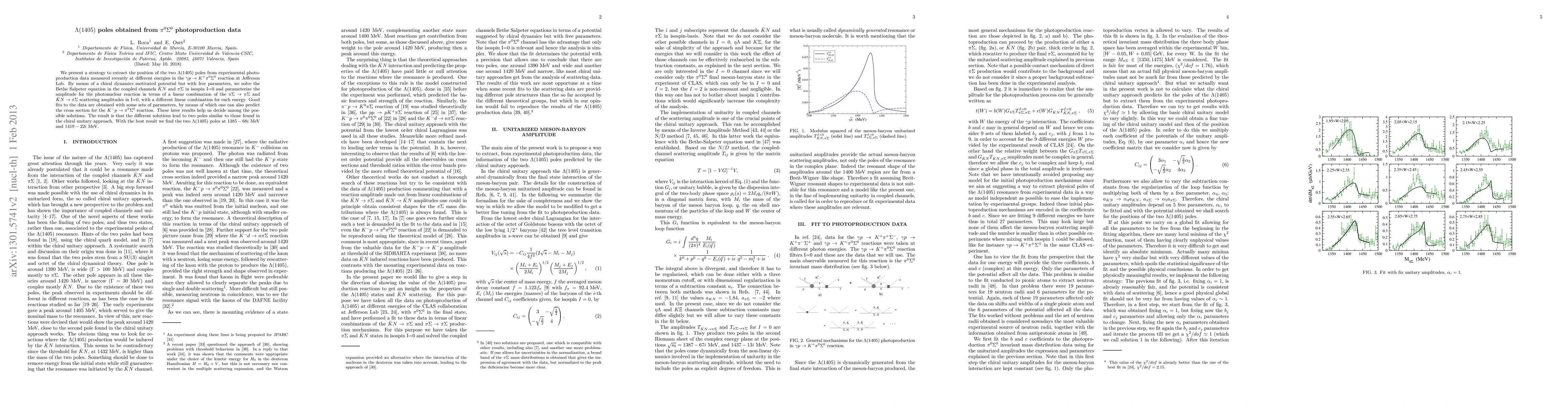 Researchers extracted the position of Lambda(1405) poles from experimental photoproduction data using a chiral dynamics motivated potential, finding two poles similar to those in the chiral unitary approach at 1385-68i MeV and 1419-22i MeV.