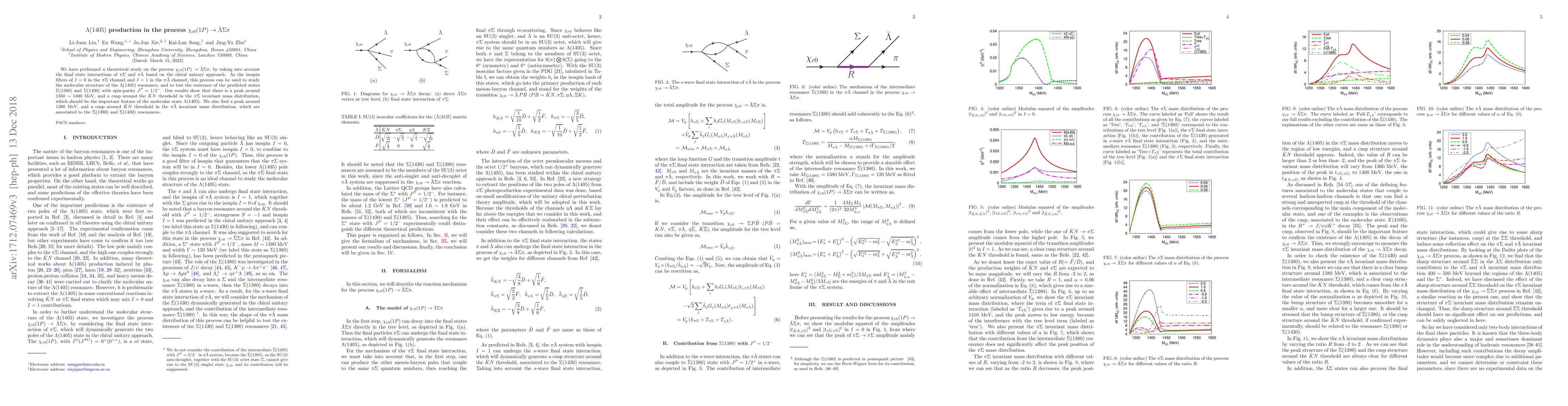 The paper studies the production of Lambda(1405) in a specific process, revealing molecular structure features and potential resonance states, providing insights into the properties of the Lambda(1405) resonance.