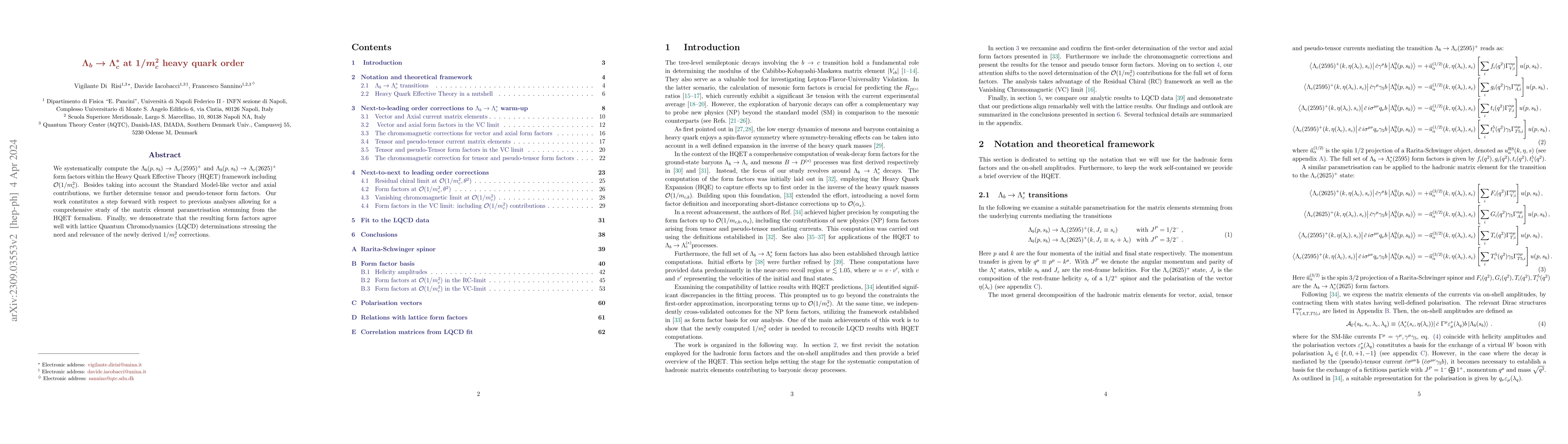 We systematically compute the $\Lambda_b(p, s_b) \to \Lambda_c(2595)^+$ and $\Lambda_b(p, s_b) \to \Lambda_c(2625)^+$ form factors within the Heavy Quark Effective Theory (HQET) framework including $\mathcal{O}(1/m_c^2)$. Besides taking into account the Standard Model-like vector and axial contributions, we further determine tensor and pseudo-tensor form factors. Our work constitutes a step forward with respect to previous analyses allowing for a comprehensive study of the matrix element parametrisation stemming from the HQET formalism. Finally, we demonstrate that the resulting form factors agree well with lattice Quantum Chromodynamics (LQCD) determinations stressing the need and relevance of the newly derived $1/m_c^2$ corrections.