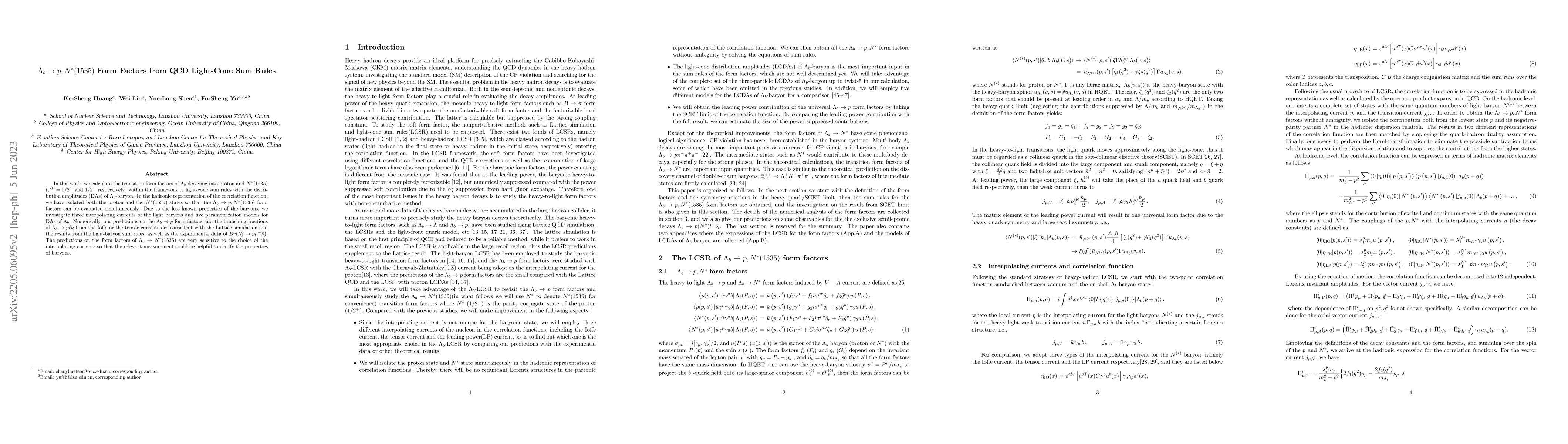 This paper calculates the transition form factors for $\Lambda_b$ decaying into a proton and $N^*(1535)$ using QCD light-cone sum rules, exploring various interpolating currents and distribution amplitudes. The study finds that predictions for $\Lambda_b \rightarrow p$ form factors are consistent with lattice simulations and experimental data, while the $\Lambda_b \rightarrow N^*(1535)$ form factors are highly dependent on the chosen currents, suggesting potential for future experimental clarification.