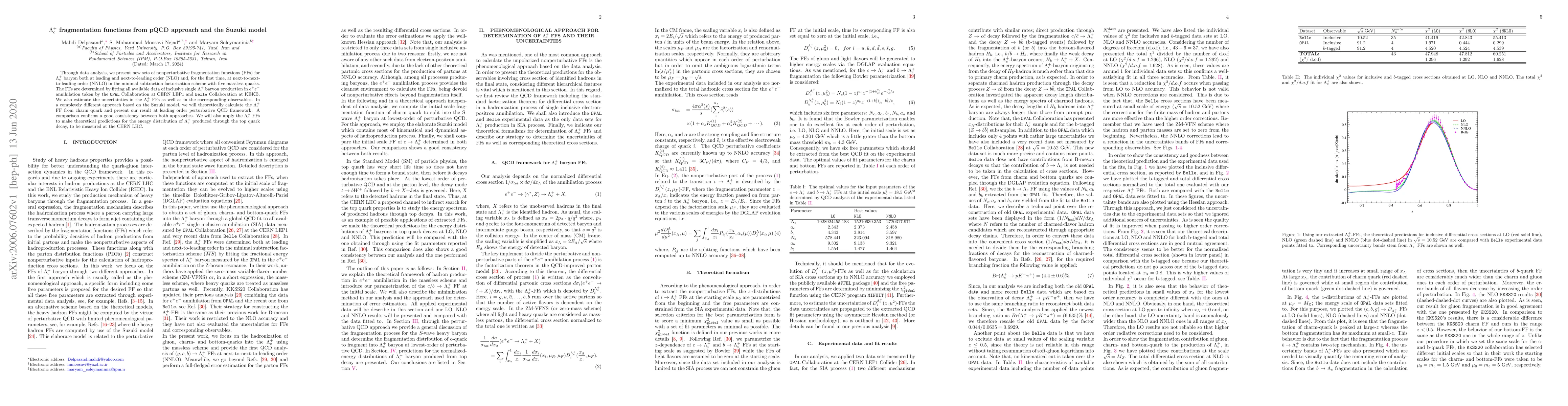 Researchers present new fragmentation functions for a baryon produced in e+e- collisions, using both experimental data analysis and theoretical calculations based on the Suzuki model. The findings confirm consistency between approaches and enable predictions for future LHC measurements.