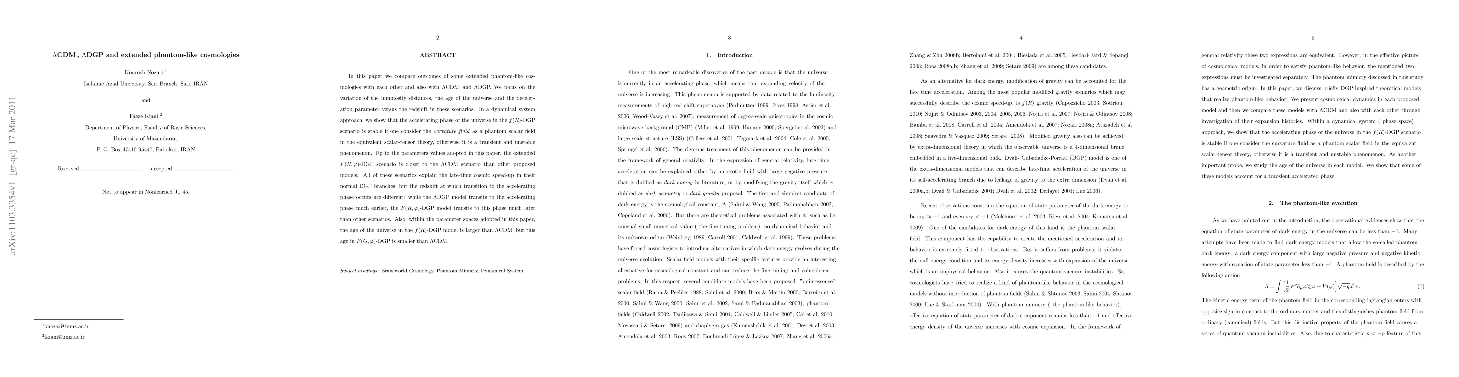 This paper compares extended phantom-like cosmologies, $\Lambda$CDM, and $\Lambda$DGP, focusing on luminosity distances, the universe's age, and the deceleration parameter. It finds that the $f(R)$-DGP scenario's accelerating phase is stable when considering the curvature fluid as a phantom scalar field, while the $F(R,\phi)$-DGP scenario is closer to $\Lambda$CDM but transitions to acceleration later than $\Lambda$DGP.