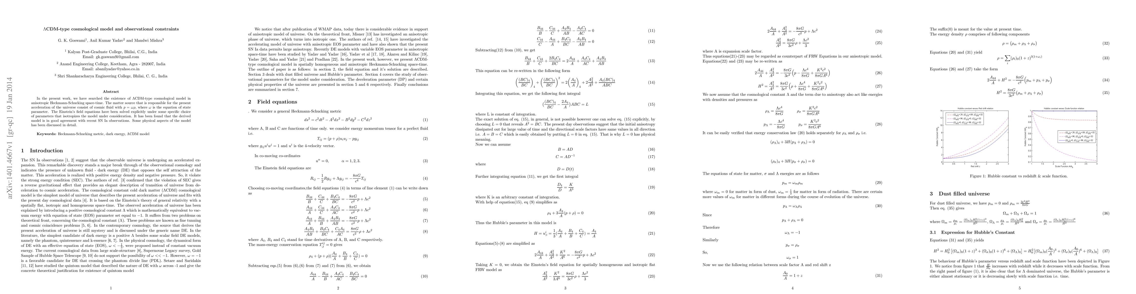In the present work, we have searched the existence of $\Lambda$CDM-type cosmological model in anisotropic Heckmann-Schucking space-time. The matter source that is responsible for the present acceleration of the universe consist of cosmic fluid with $p = \omega\rho$, where $\omega$ is the equation of state parameter. The Einstein's field equations have been solved explicitly under some specific choice of parameters that isotropizes the model under consideration. It has been found that the derived model is in good agreement with recent SN Ia observations. Some physical aspects of the model has been discussed in detail.