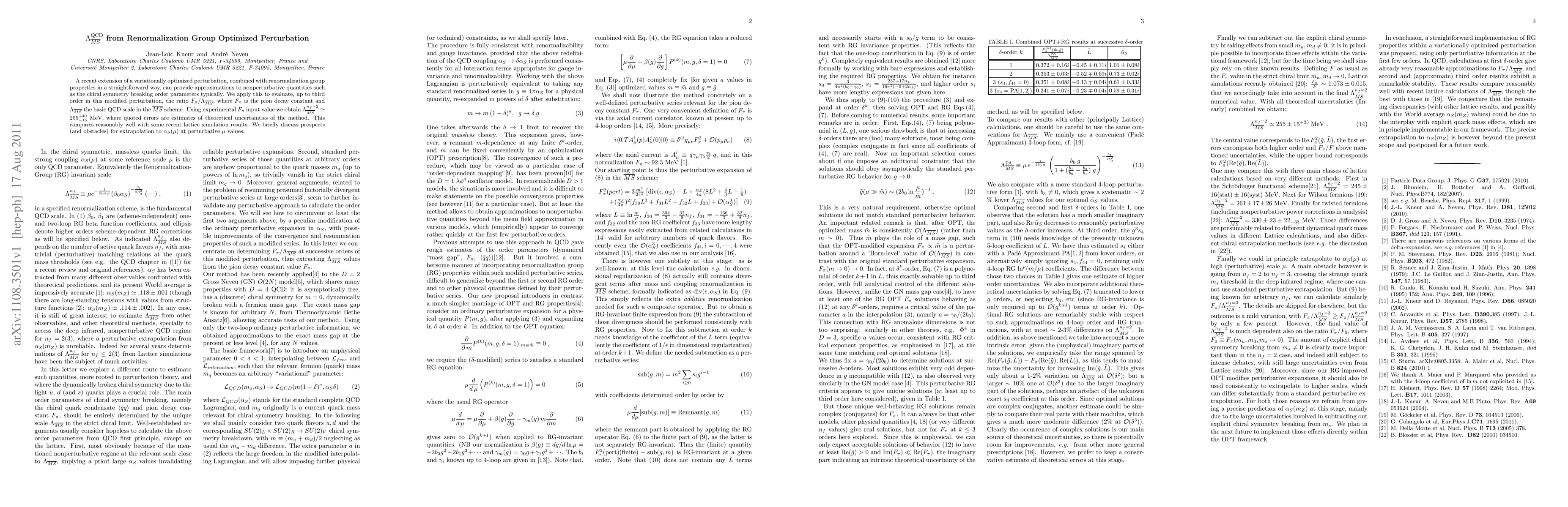 A recent extension of a variationally optimized perturbation, combined with renormalization group properties in a straightforward way, can provide approximations to nonperturbative quantities such as the chiral symmetry breaking order parameters typically. We apply this to evaluate, up to third order in this modified perturbation, the ratio Fpi/Lambda, where Fpi is the pion decay constant and Lambda the basic QCD scale in the modified MS scheme. Using experimental Fpi input value we obtain Lambda(nf=2) ~ 255_{-15}^{+40} MeV, where quoted errors are estimates of theoretical uncertainties of the method. This compares reasonably well with some recent lattice simulation results. We briefly discuss prospects (and obstacles) for extrapolation to alpha_S(mu) at perturbative mu values.
