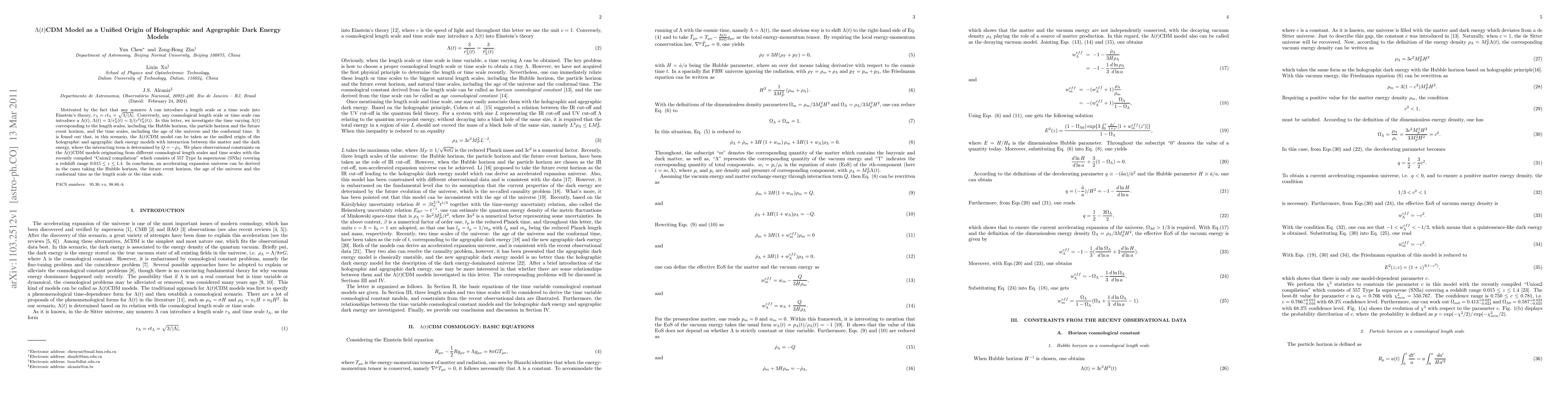 This paper explores the $\Lambda(t)$CDM model as a unified origin for holographic and agegraphic dark energy models, showing that varying $\Lambda$ with time scales like the Hubble horizon and the age of the universe can lead to an accelerating universe. Observational constraints from Type Ia supernovae data support the model's predictions.