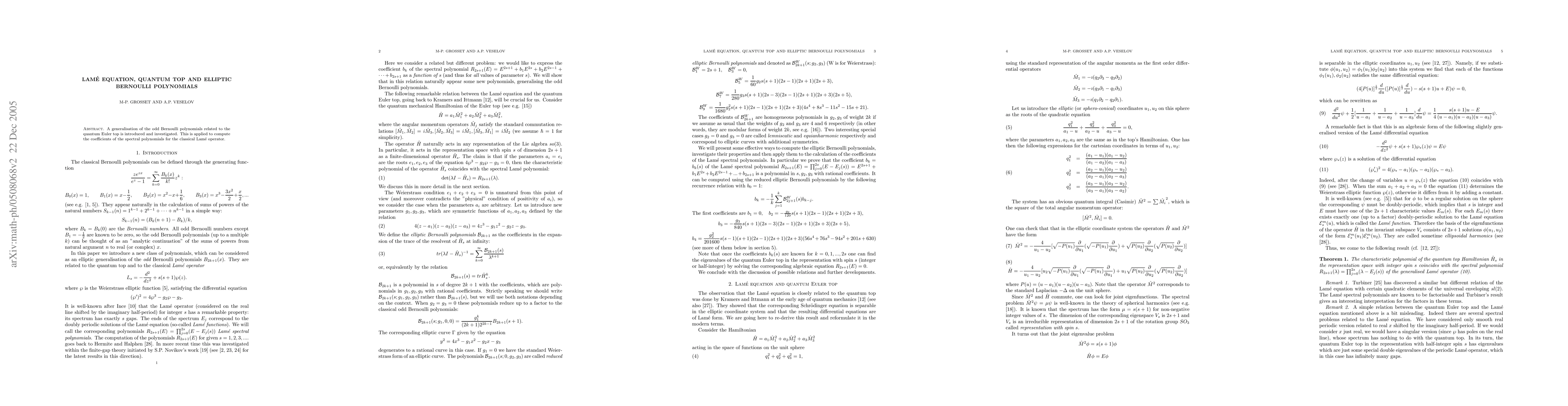A generalisation of the odd Bernoulli polynomials related to the quantum Euler top is introduced and investigated. This is applied to compute the coefficients of the spectral polynomials for the classical Lam\'e operator.