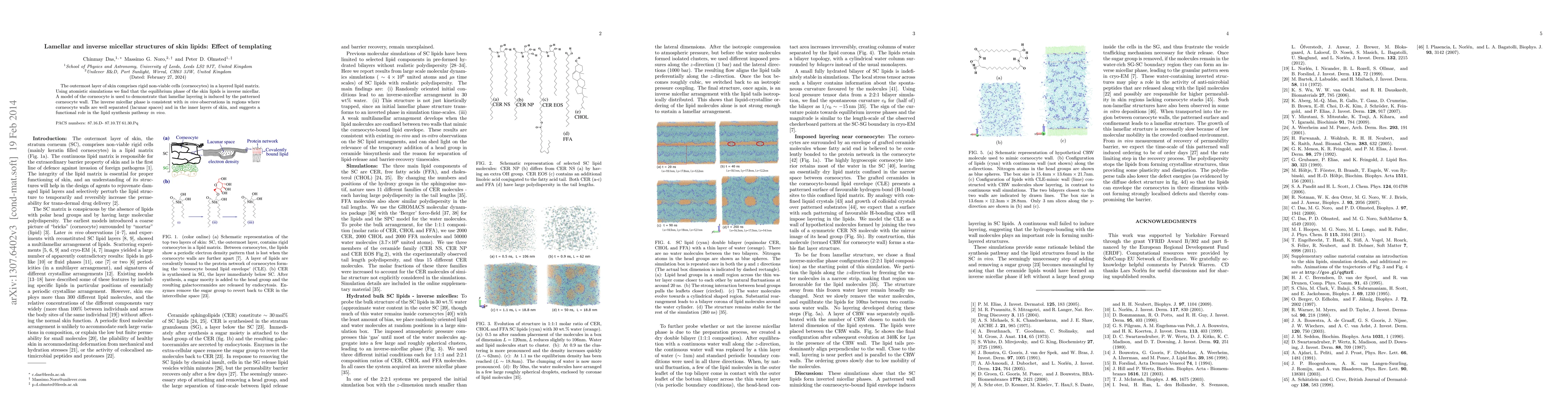 The outermost layer of skin, the stratum corneum (SC), comprises rigid corneocytes in a layered lipid matrix. Using atomistic simulations we find that the equilibrium phase of the SC lipids is inverse micellar. A model of the corneocyte is used to demonstrate that lamellar layering is induced by the patterned corneocyte wall. The inverse micellar phase is consistent with in vivo observations in the lacunar spaces and at the stratum granulosum - SC boundary region, and suggests a functional role in the lipid synthesis pathway in vivo.