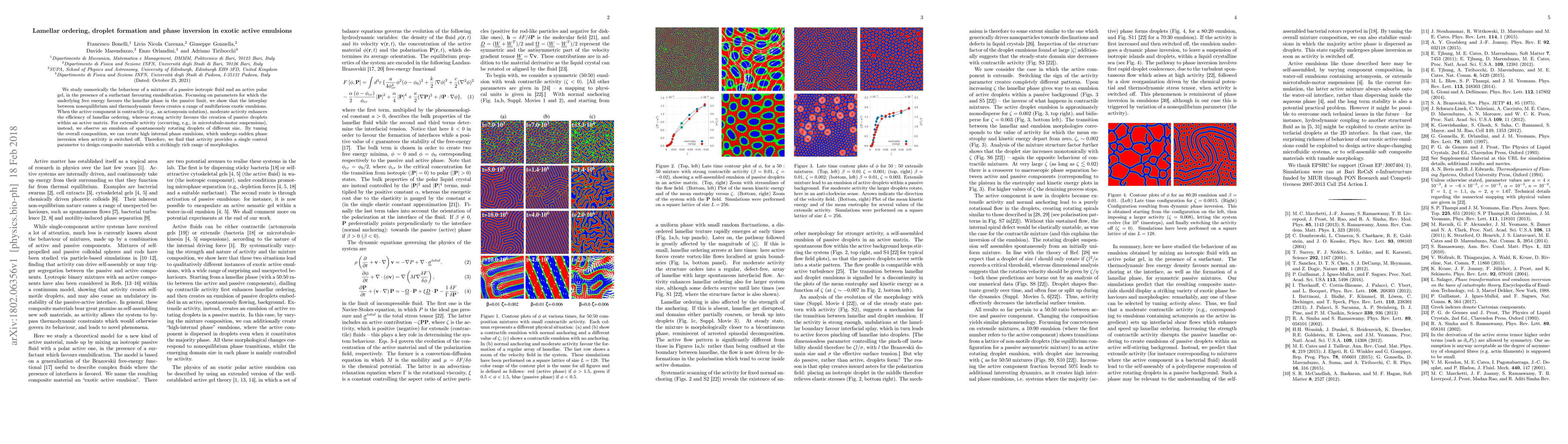 We study numerically the behaviour of a mixture of a passive isotropic fluid and an active polar gel, in the presence of a surfactant favouring emulsification. Focussing on parameters for which the underlying free energy favours the lamellar phase in the passive limit, we show that the interplay between nonequilibrium and thermodynamic forces creates a range of multifarious exotic emulsions. When the active component is contractile (e.g., an actomyosin solution), moderate activity enhances the efficiency of lamellar ordering, whereas strong activity favours the creation of passive droplets within an active matrix. For extensile activity (occurring, e.g., in microtubule-motor suspensions), instead, we observe an emulsion of spontaneously rotating droplets of different size. By tuning the overall composition, we can create high internal phase emulsions, which undergo sudden phase inversion when activity is switched off. Therefore, we find that activity provides a single control parameter to design composite materials with a strikingly rich range of morphologies.