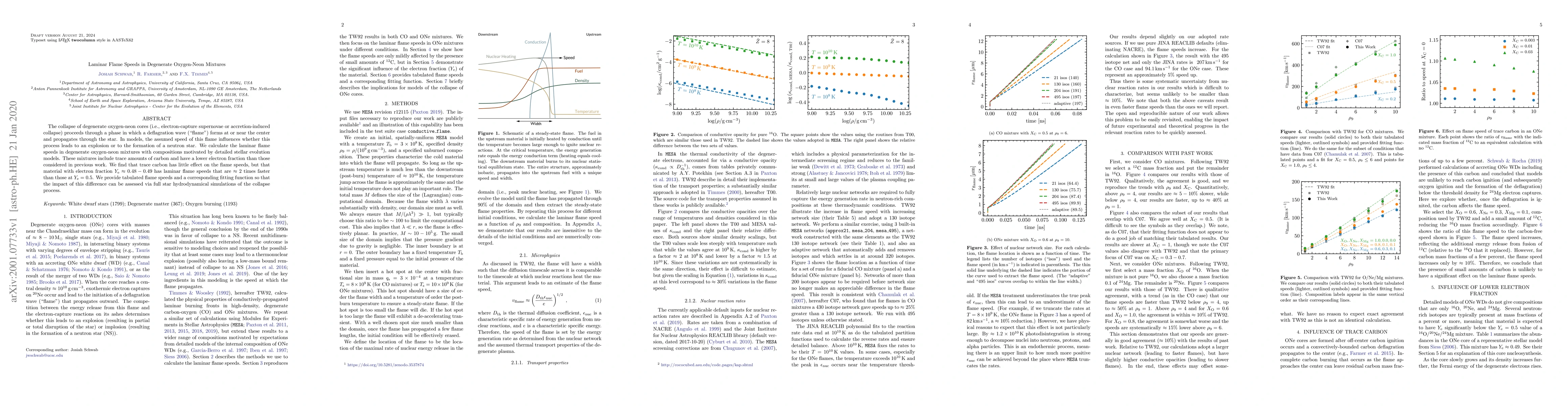This paper investigates laminar flame speeds in degenerate oxygen-neon mixtures relevant to electron-capture supernovae, finding that mixtures with electron fractions around $Y_e \approx 0.48-0.49$ have flame speeds approximately twice as fast as those with $Y_e = 0.5$. The study provides tabulated data and a fitting function for use in hydrodynamical simulations of stellar collapse.