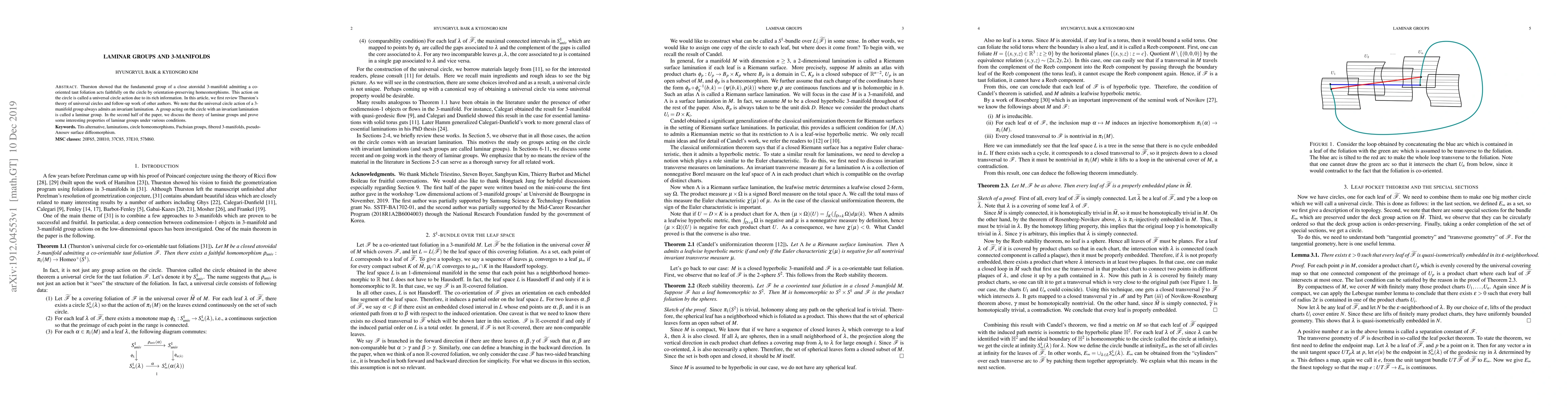 Thurston showed that the fundamental group of a close atoroidal 3-manifold admitting a co-oriented taut foliation acts faithfully on the circle by orientation-preserving homeomorphisms. This action on the circle is called a universal circle action due to its rich information. In this article, we first review Thurston's theory of universal circles and follow-up work of other authors. We note that the universal circle action of a 3-manifold group always admits an invariant lamination. A group acting on the circle with an invariant lamination is called a laminar group. In the second half of the paper, we discuss the theory of laminar groups and prove some interesting properties of laminar groups under various conditions.