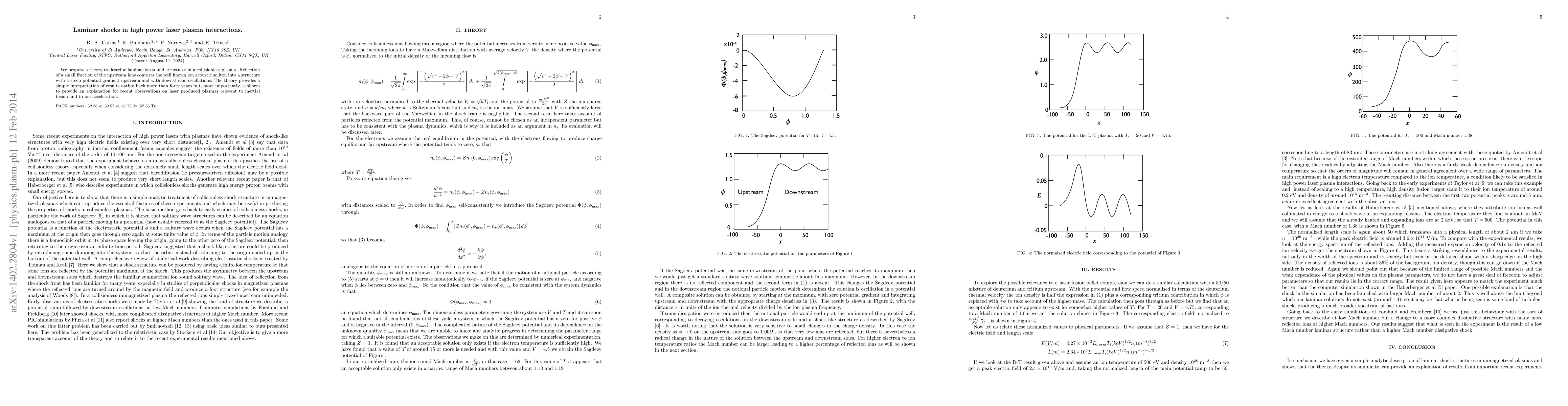 We propose a theory to describe laminar ion sound structures in a collisionless plasma. Reflection of a small fraction of the upstream ions converts the well known ion acoustic soliton into a structure with a steep potential gradient upstream and with downstream oscillations. The theory provides a simple interpretation of results dating back more than forty years but, more importantly, is shown to provide an explanation for recent observations on laser produced plasmas relevant to inertial fusion and to ion acceleration.