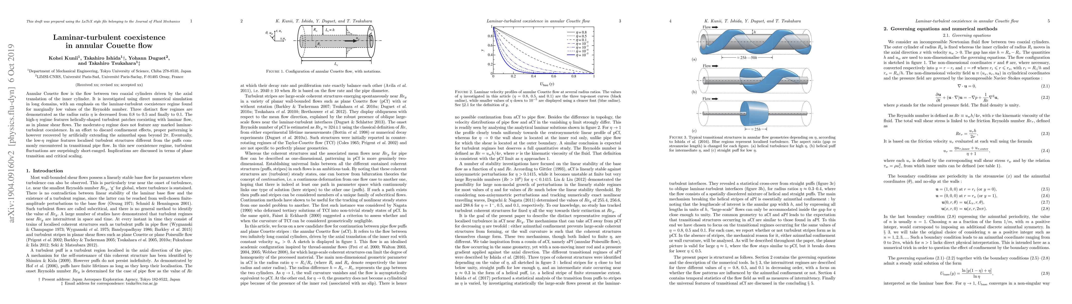 This paper investigates annular Couette flow using direct numerical simulations, revealing laminar-turbulent coexistence at low Reynolds numbers. Three regimes are identified: high-$\eta$ with helical turbulent patches, moderate-$\eta$ without coexistence, and low-$\eta$ with short-ranged, localised turbulent structures, suggesting implications for phase transition and critical scaling.