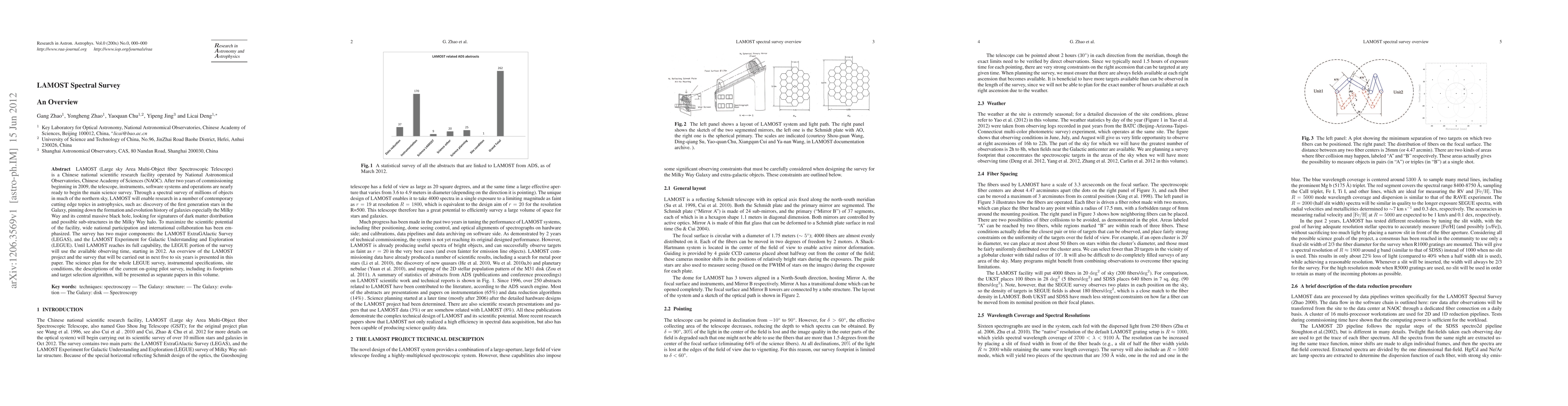 The LAMOST Spectral Survey aims to conduct a comprehensive spectral survey of millions of objects in the northern sky, enabling research on first-generation stars, galaxy formation, and dark matter distribution. The survey, starting in 2012, includes two major components: LEGAS and LEGUE, with the latter focusing on understanding the Milky Way and its central black hole.