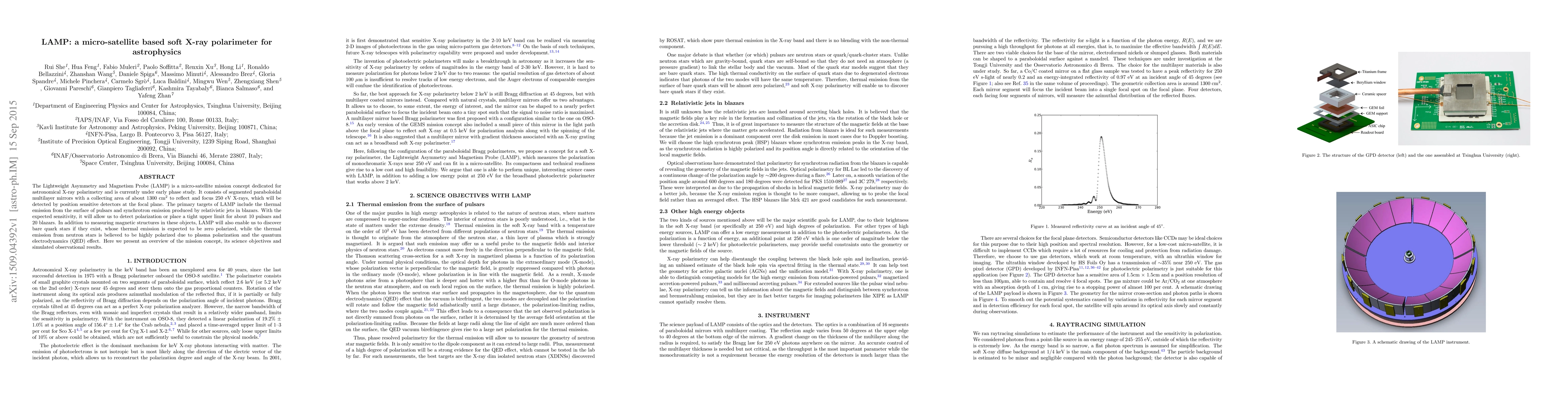 The LAMP micro-satellite aims to perform X-ray polarimetry using segmented paraboloidal mirrors to focus 250 eV X-rays, targeting pulsars and blazars to study their magnetic structures and potentially detect bare quark stars. The mission concept includes an overview of its science objectives and simulated observational results.